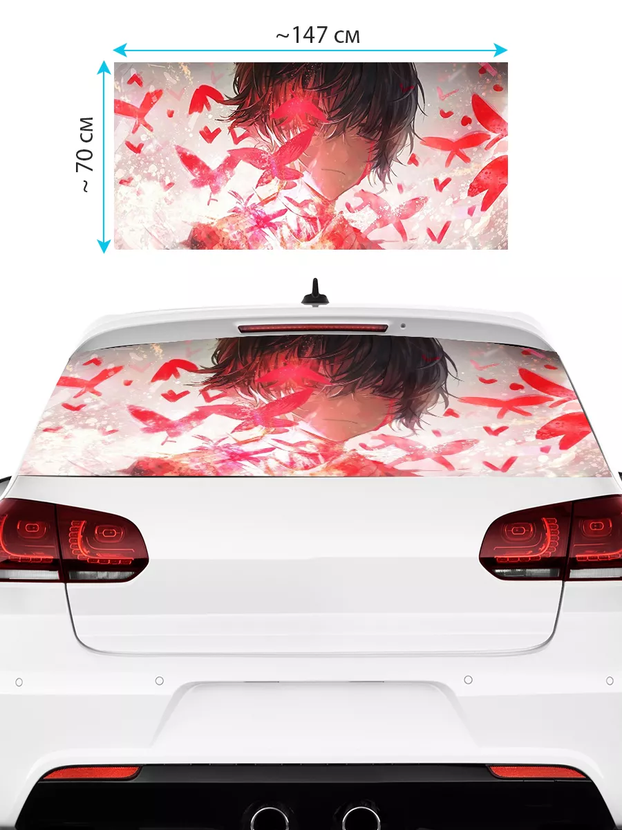Преобразите внешний вид вашего автомобиля с помощью уникальной наклейки - сетки на заднее стекло авто с аниме парнями! Эта большая наклейка размером 150х70 см идеально подойдет для большинства популярных моделей, будь то седан, хэтчбек или универсал