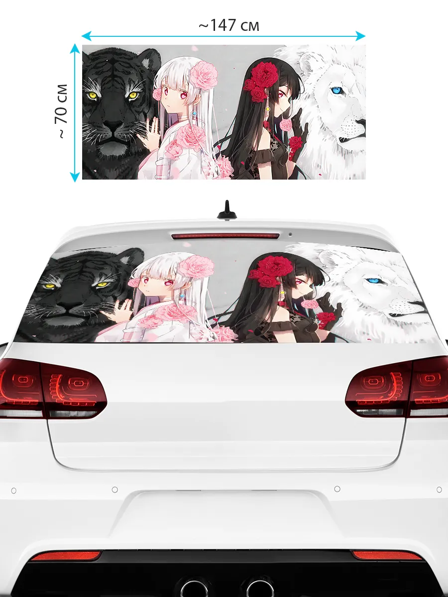 Преобразите внешний вид вашего автомобиля с помощью уникальной наклейки - сетки на заднее стекло авто с аниме девушками! Эта большая наклейка размером 150х70 см идеально подойдет для большинства популярных моделей, будь то седан, хэтчбек или универсал