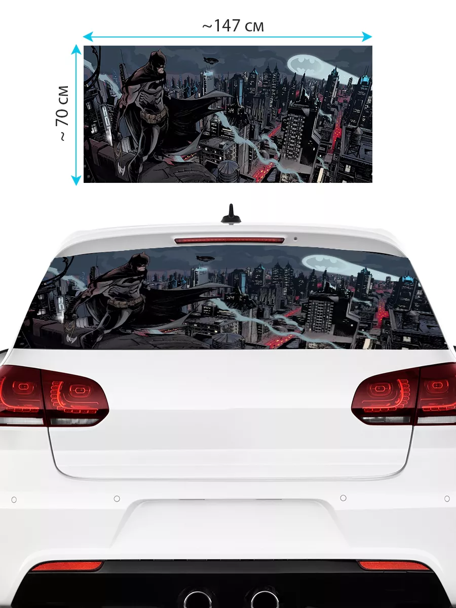Эта наклейка предназначена для внешнего оформления заднего стекла автомобиля и выполнена на самоклеящейся перфорированной виниловой пленке ПВХ. Размер 150×70 см подходит большинству популярых авто и легко подрезается под форму стекла.