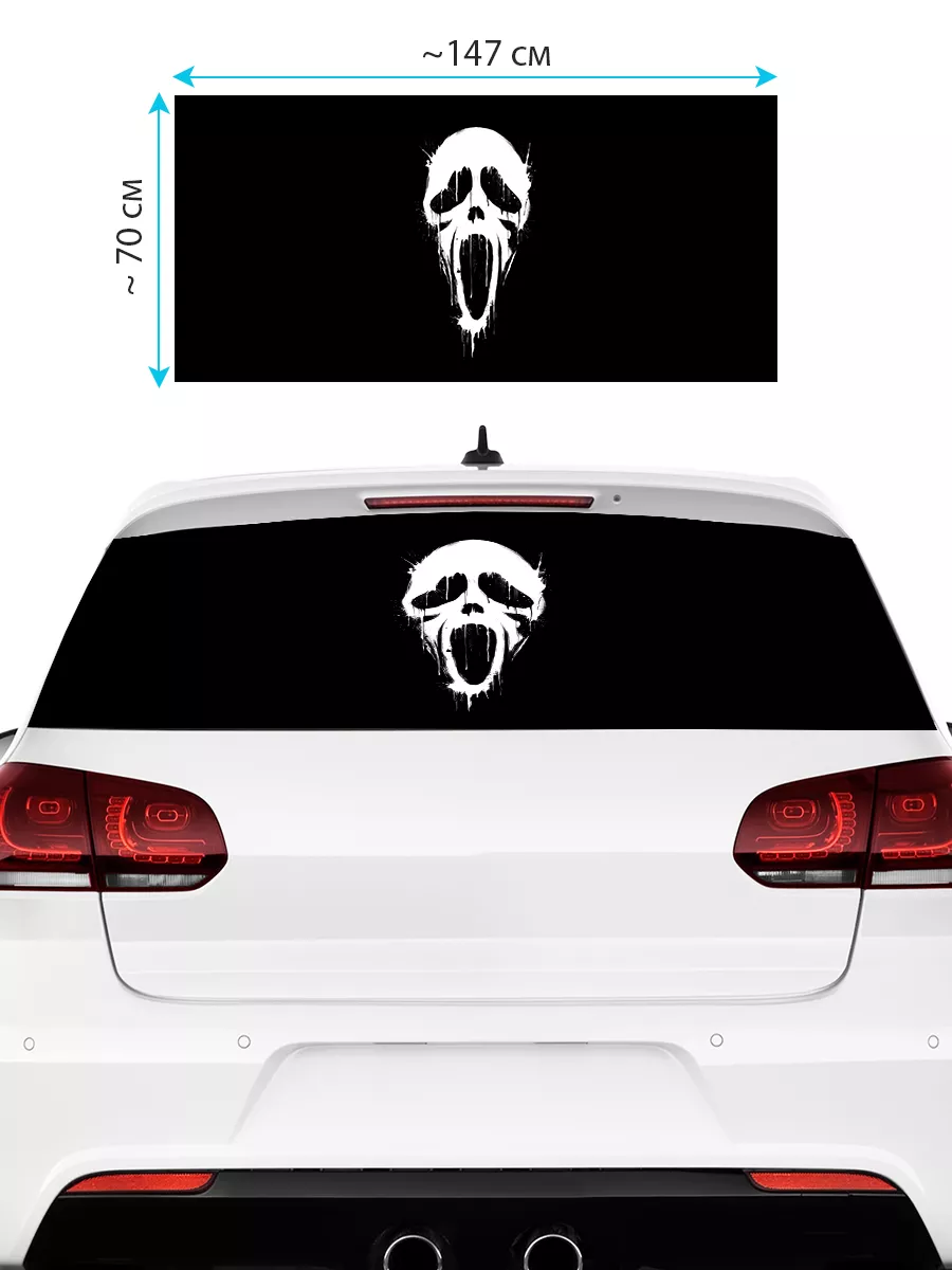 Декоративная наклейка на заднее стекло автомобиля Череп Крик 423 представляет крупную перфорированную композицию для обновления внешнего вида вашего авто. Размер 150×70 см обеспечивает универсальность на большинстве моделей, включая седаны, хэтчбеки и универсалы. Изготовлена из самоклеящейся виниловой пленки ПВХ с перфорацией по всей площади, что позволяет сохранять обзор и при этом украшать кузов.