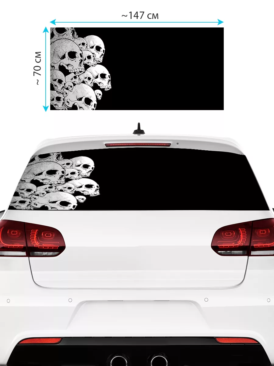 Эта наклейка служит декоративной и функциональной деталью для автомобиля. Размер 150×70 см подходит большинству кузовов, а перфорированная виниловая плёнка ПВХ обеспечивает долговечность и защиту от влаги и солнечного излучения.