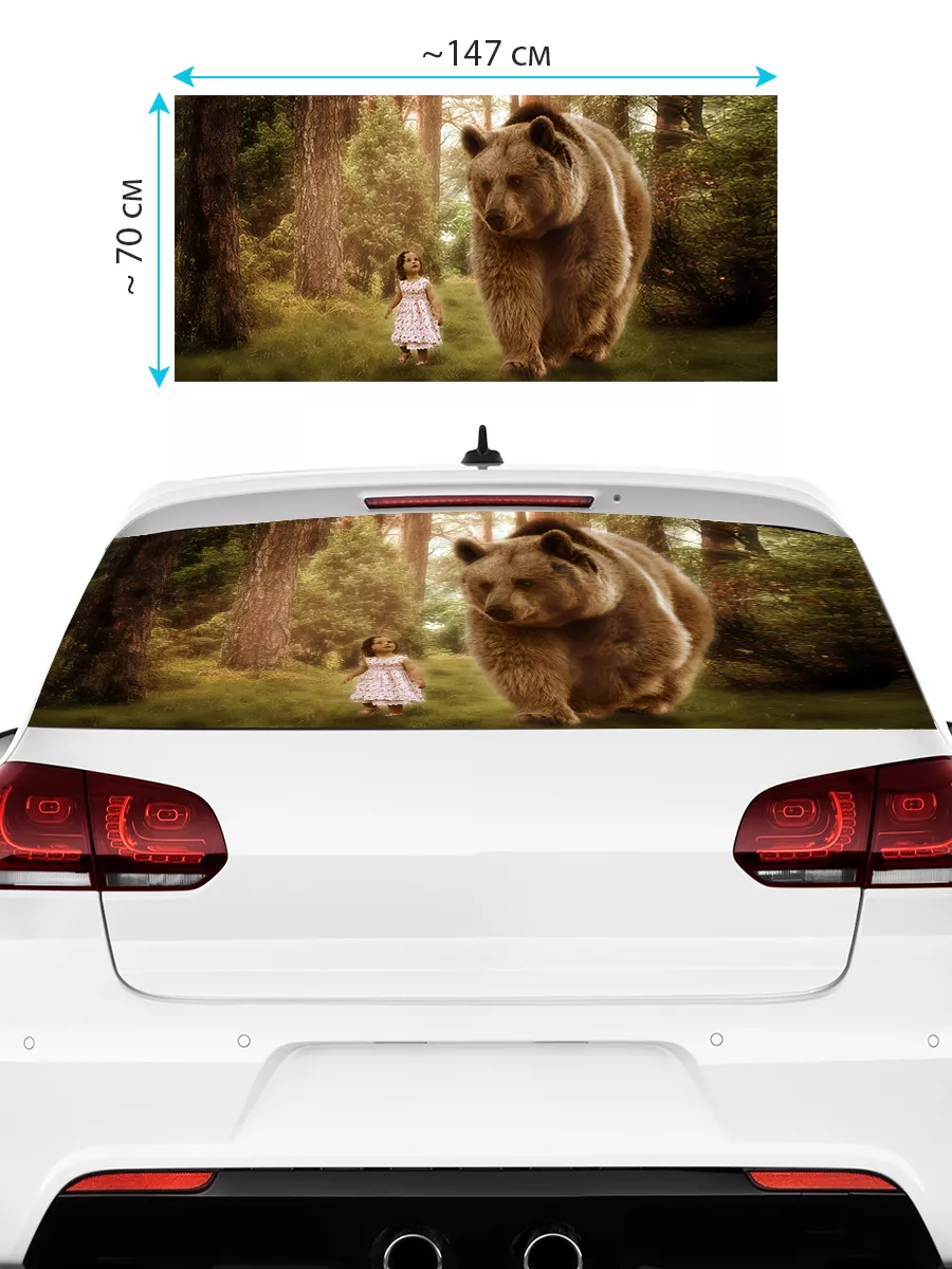 Преобразите внешний вид вашего авто с помощью большой наклейки – сетки на заднее стекло с изображением бурого медведя