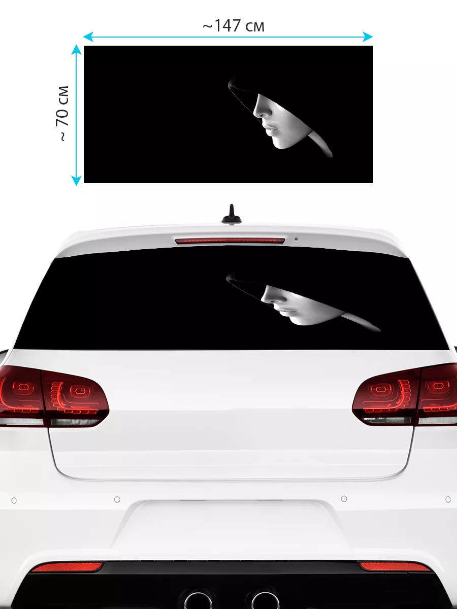 Эта наклейка — крупная декоративная наклейка для внешнего тюнинга автомобиля, предназначенная для заднего стекла. Размер 150х70 см делает ее универсальной и подходящей для большинства кузовов: седаны, хэтчбеки и универсалы. При желании можно подрезать лист под нужный размер, чтобы точно вписать его в стекло.