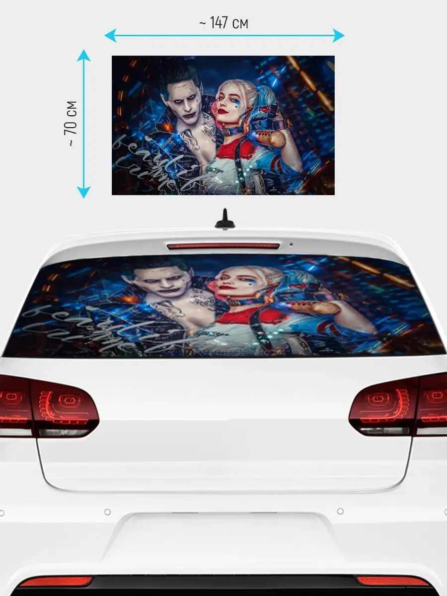 Большая декоративная наклейка на заднее стекло авто размером 150×70 см. Перфорированная самоклеящаяся виниловая пленка ПВХ обеспечивает прочное крепление к поверхности, устойчивость к любым мокам и погодным условиям, не выгорает на солнце. При желании наклейку можно подрезать под нужный размер и легко снять без следов.