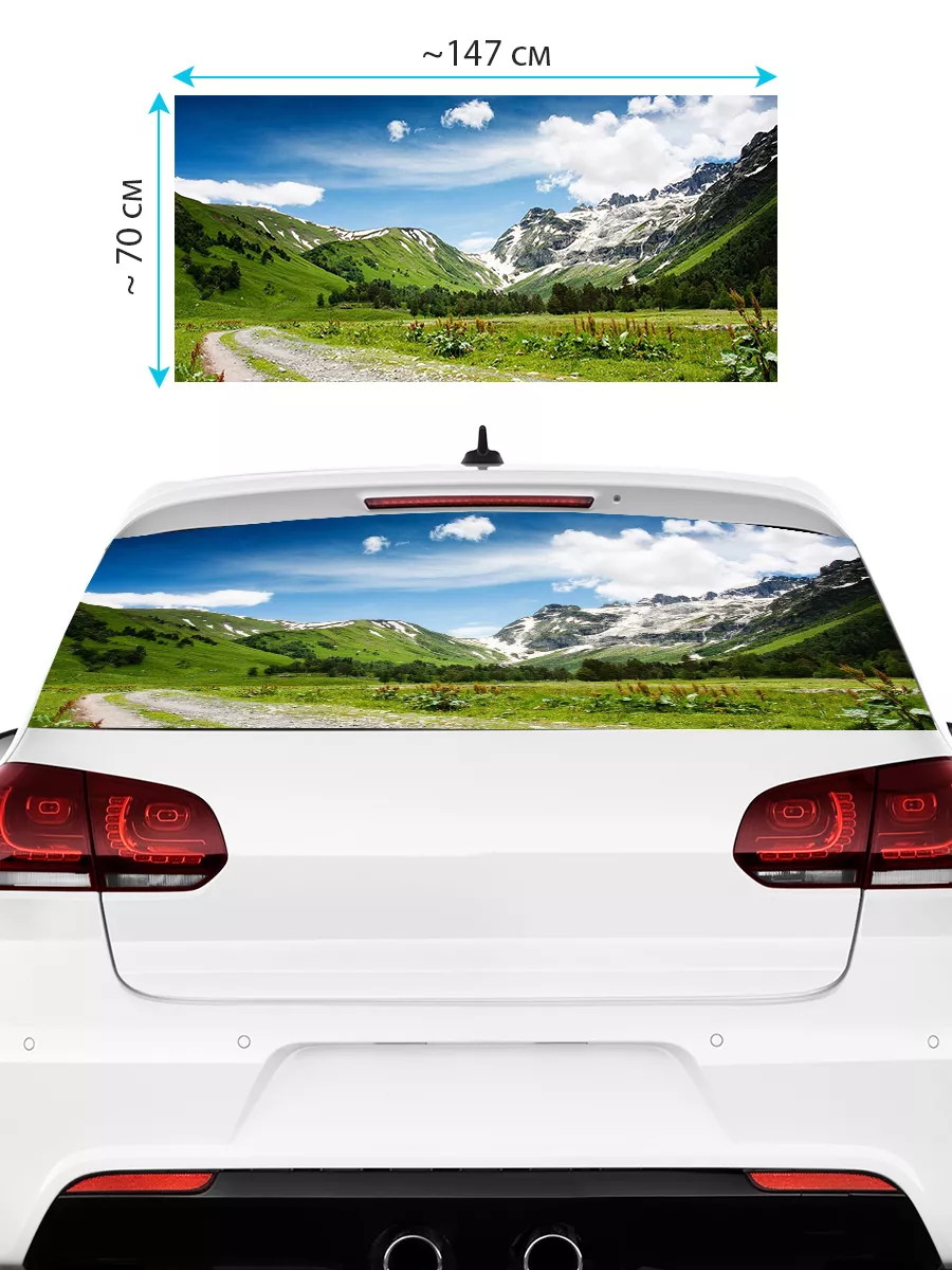 Преобразите внешний вид вашего авто с помощью большой наклейки - сетки на заднее стекло с изображением горного пейзажа