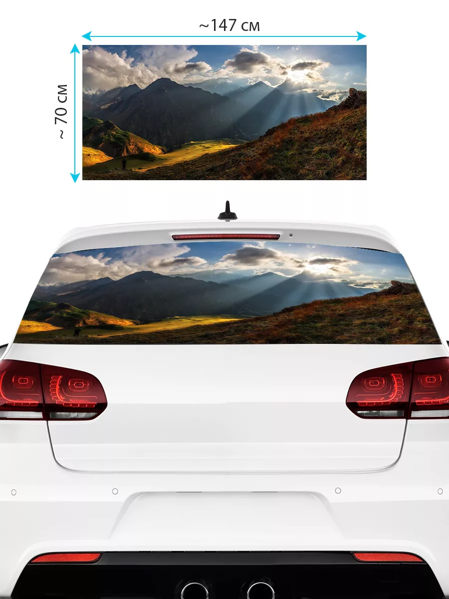 Преобразите внешний вид вашего авто с помощью большой наклейки - сетки на заднее стекло с изображением горного пейзажа