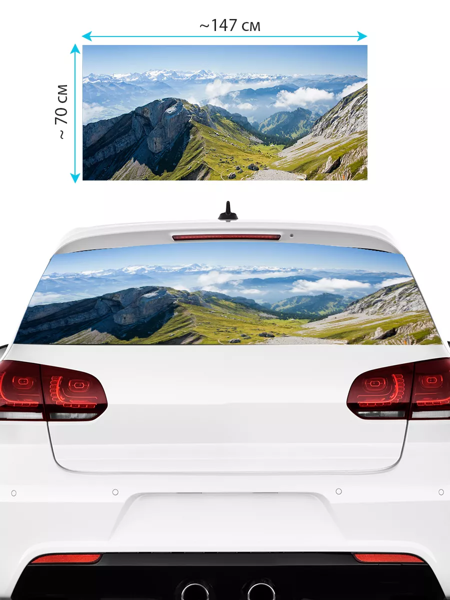 Преобразите внешний вид вашего авто с помощью большой наклейки - сетки на заднее стекло с изображением горного пейзажа
