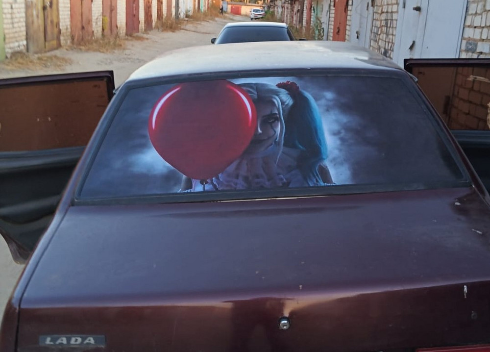 Наклейка предназначена для заднего стекла автомобиля и служит декоративным элементом, а также частично скрывает салон от посторонних глаз, не мешая обзору водителю. Подойдет для большинства популярных авто — седанов, хэтчбеков и универсалов.