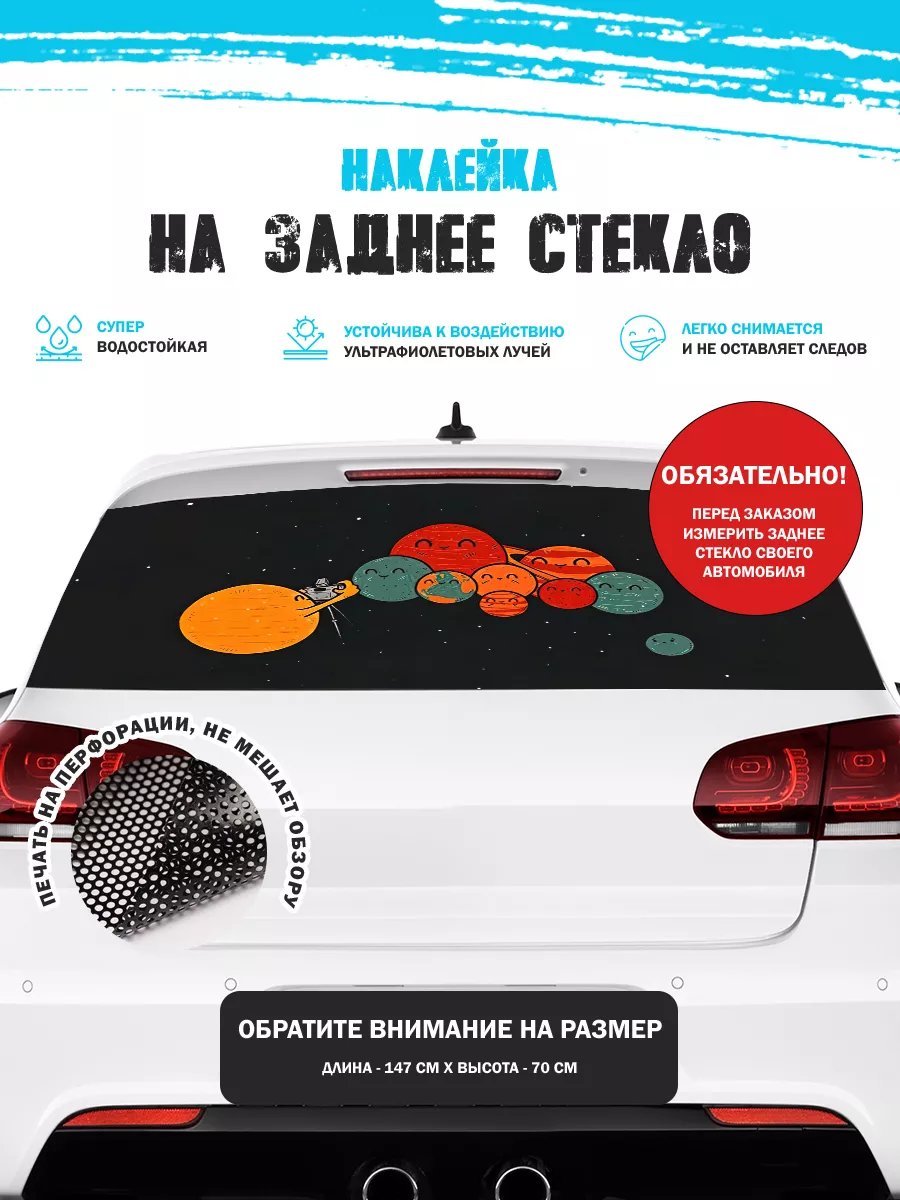 Эта наклейка предназначена для заднего стекла автомобиля и станет заметным декоративным акцентом. Размер 150х70 см — универсальный, позволяет покрыть большую часть поверхности стекла и при необходимости подрезать под нужный контур. Наклейка изготовлена из высококачественной самоклеящейся виниловой пленки ПВХ с перфорацией, что обеспечивает стиль и практичность. Перфорация сохраняет обзор через стекло, а яркие принты добавляют автомобилю индивидуальности. В коллекции Stickerboss представлены варианты с надписями, персонажами известных фильмов и мультфильмов, животными, аниме, флагами, логотипами клубов, городами и многим другим. Наклейка имеет перфорацию по всей площади, что позволяет украсить автомобиль и скрыть часть стекла. Товар упаковывается в защитную тубу для сохранности во время доставки.