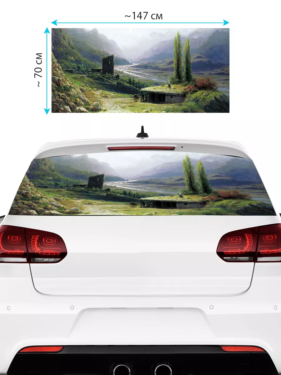Преобразите внешний вид вашего авто с помощью большой наклейки - сетки на заднее стекло с изображением горного пейзажа
