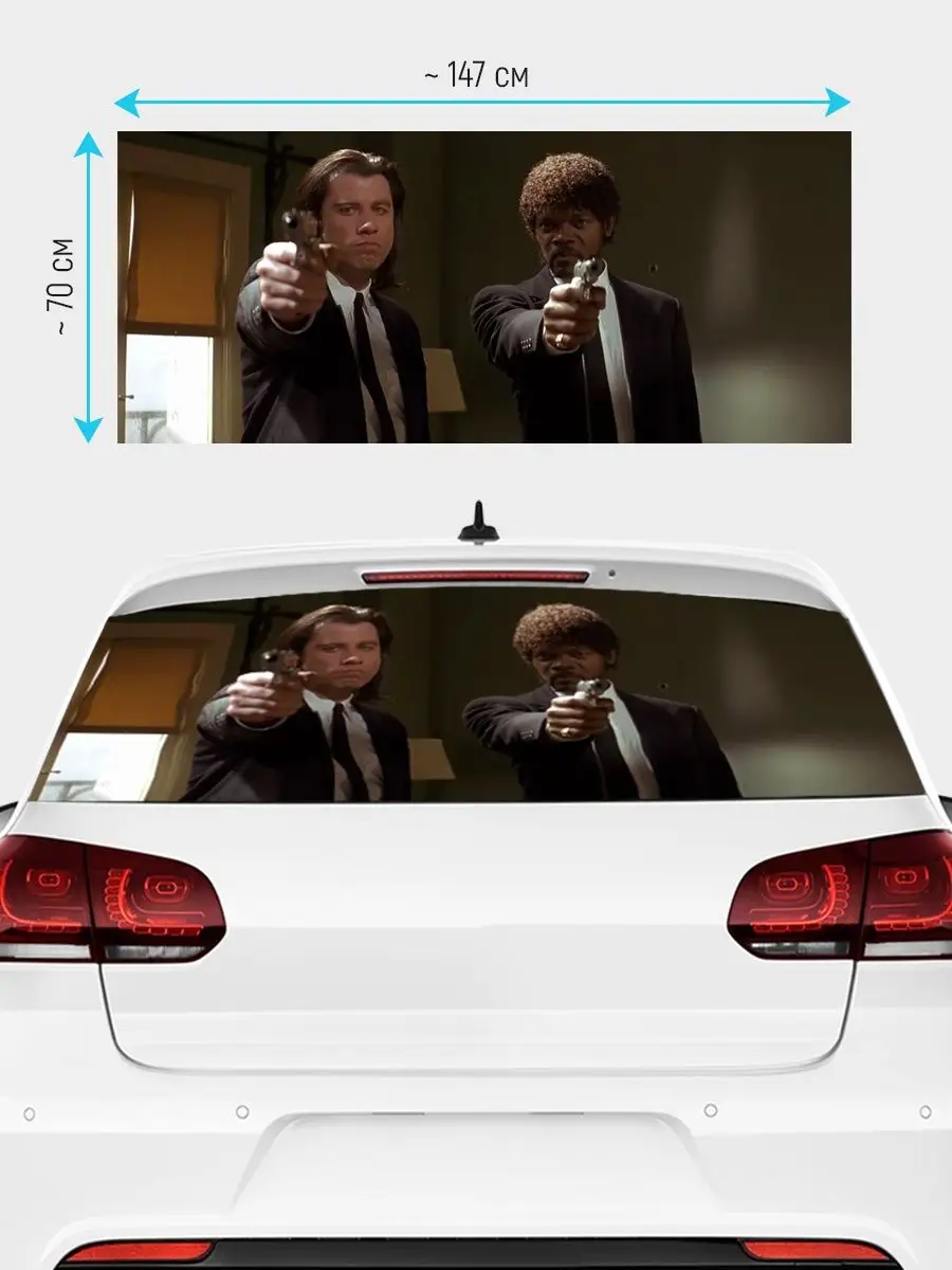 Большая декоративная наклейка на заднее стекло авто криминальное чтиво. Универсальный размер 150x70 см подходит большинству авто: седан, хэтчбек или универсал. Наклейка выполнена на перфорированной виниловой плёнке ПВХ, обеспечивает надёжное приклеивание, защиту от пыли, влаги и солнечных лучей. При необходимости можно подрезать лист под нужный размер. Перфорированная поверхность даёт стильный вид, сохраняя частичную обзорность. В ассортименте множество вариантов — персонажи фильмов, игры, животные, флаги, города и многое другое. Наклейка перфорирована по всей площади, что позволяет украсить автомобиль и скрыть от любопытных глаз пассажиров. Товар упакован в защитную тубу для надёжной доставки. Отличный подарок к празднику или просто яркий акцент для поездок.