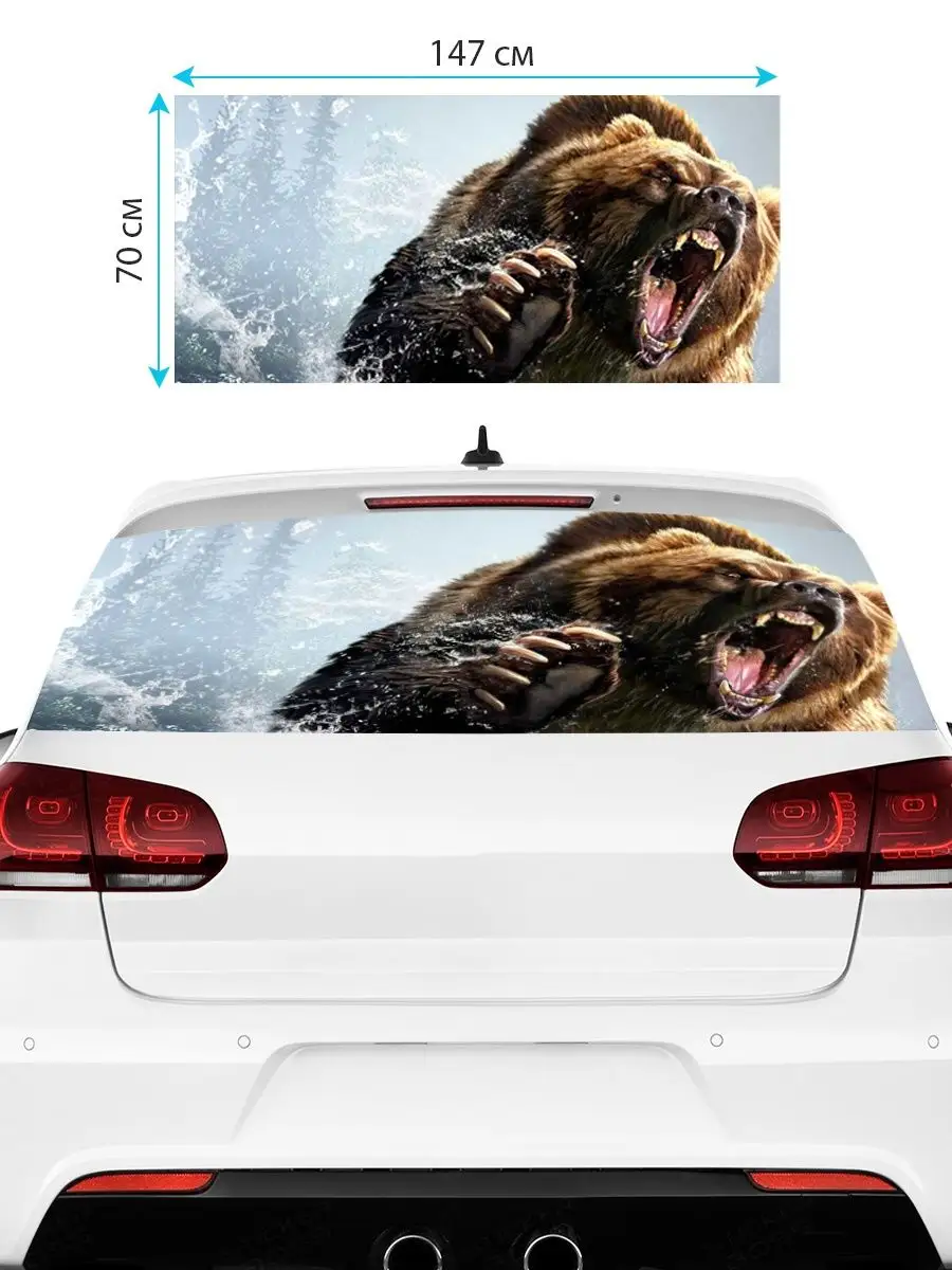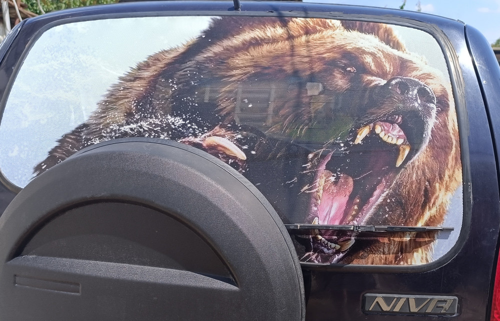 Преобразите внешний вид вашего авто с помощью большой наклейки – сетки на заднее стекло с изображением бурого медведя