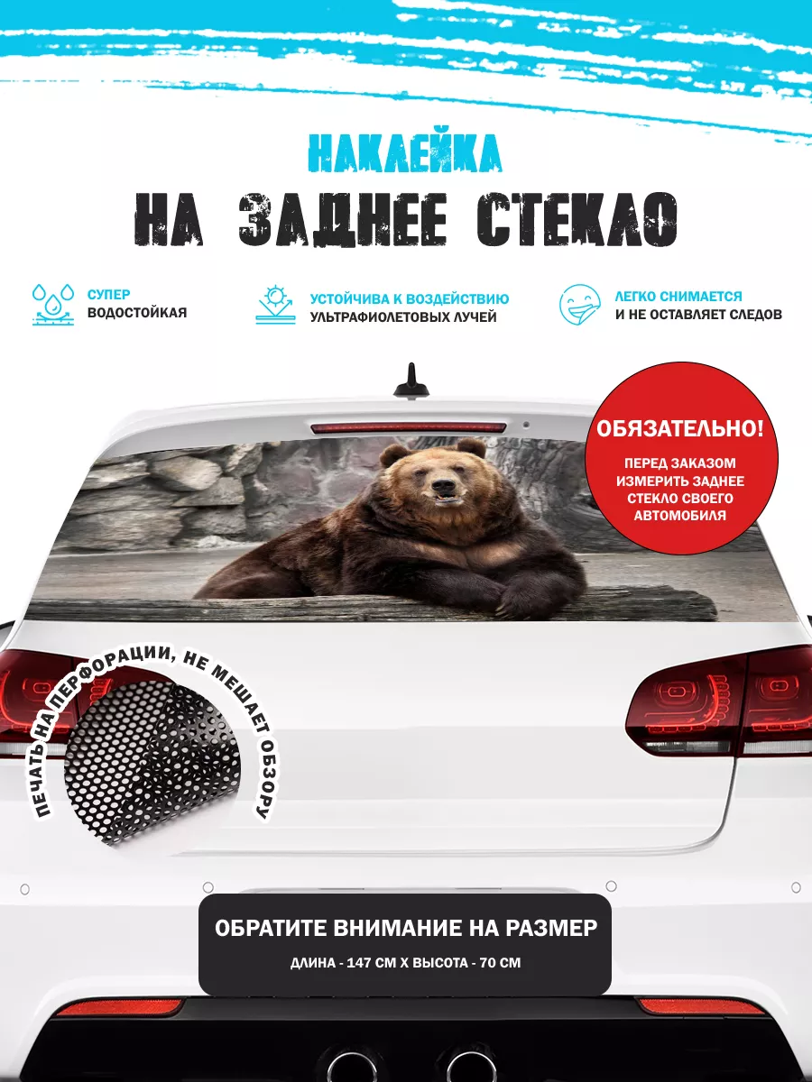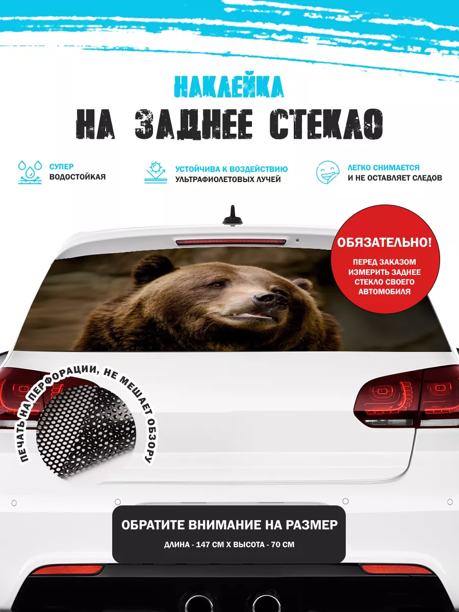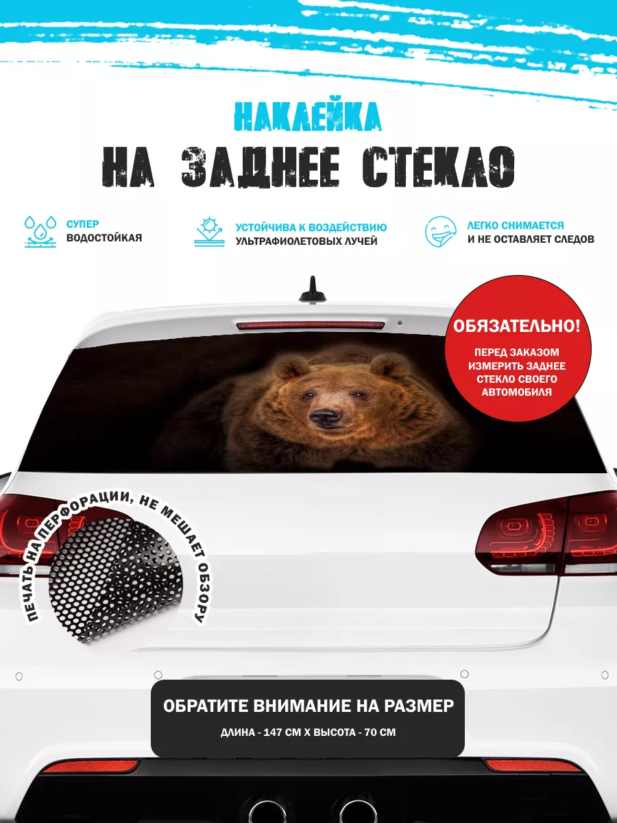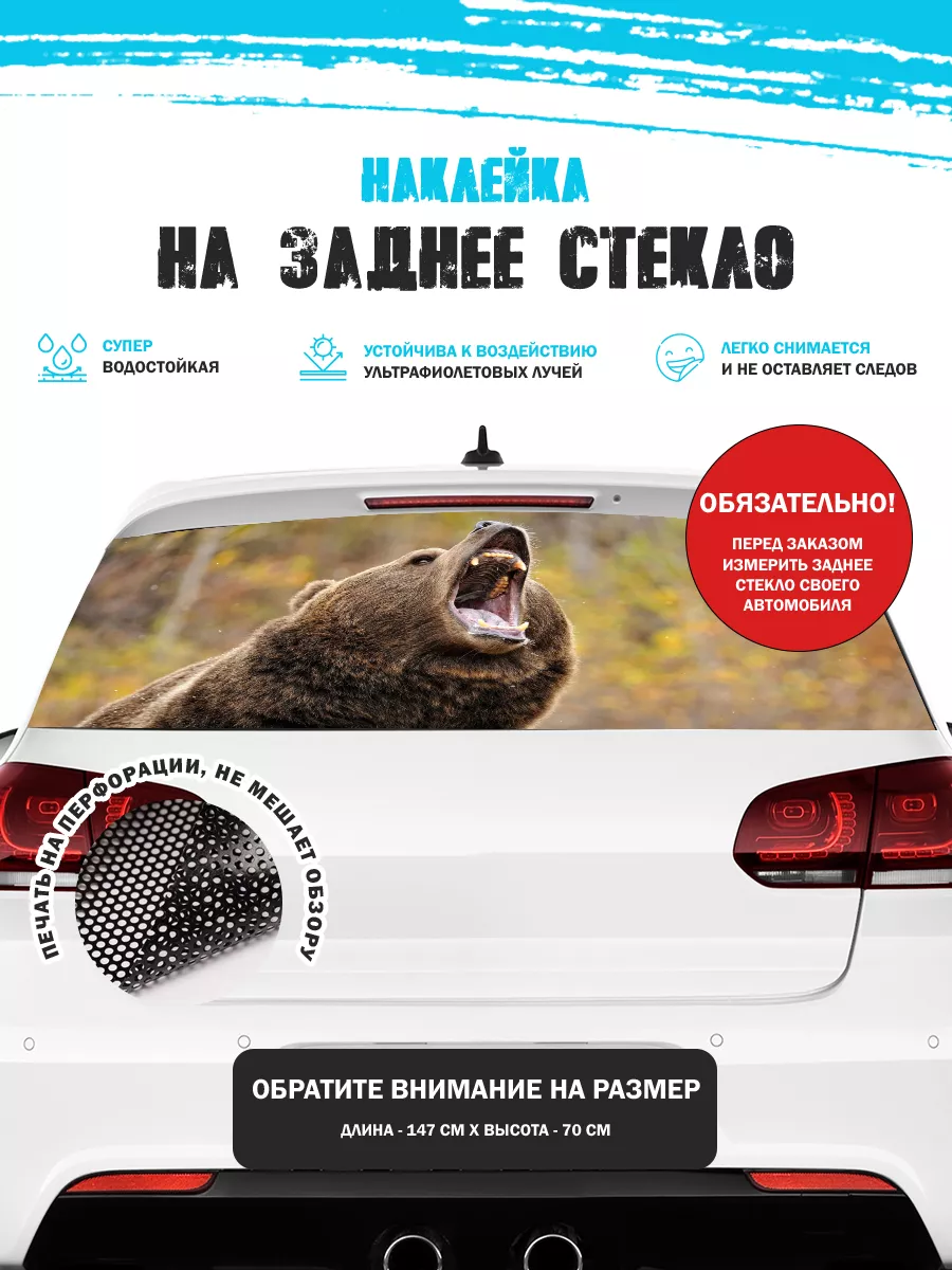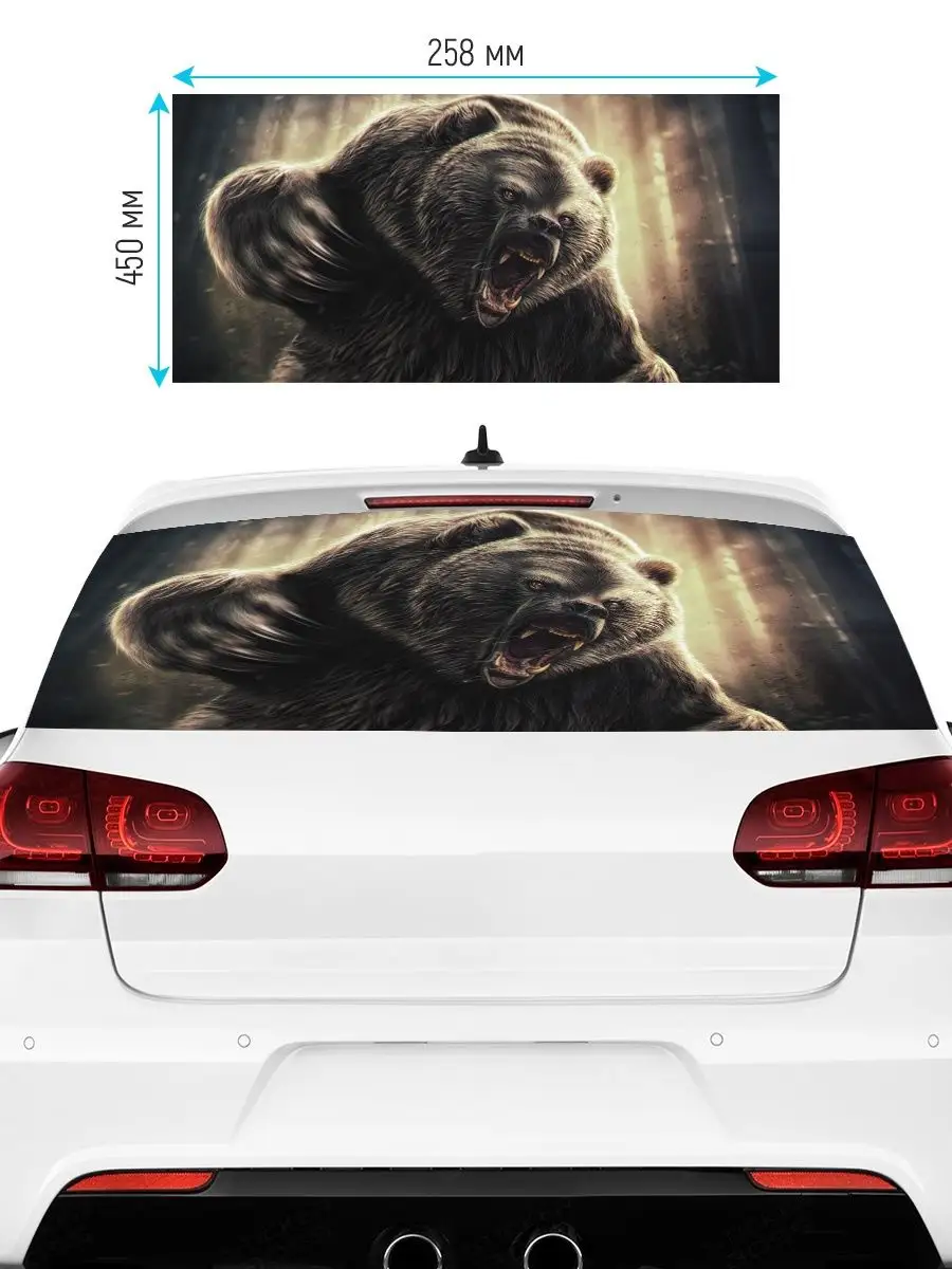 Преобразите внешний вид вашего авто с помощью большой наклейки – сетки на заднее стекло с изображением бурого медведя