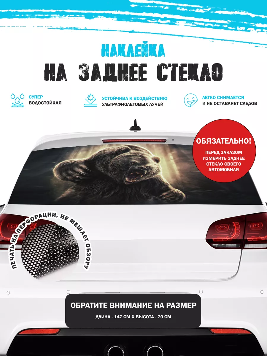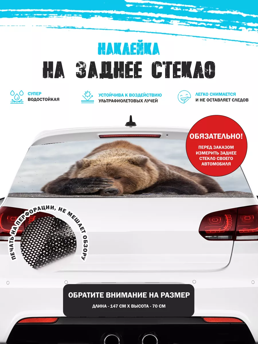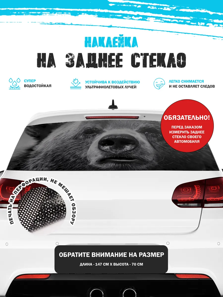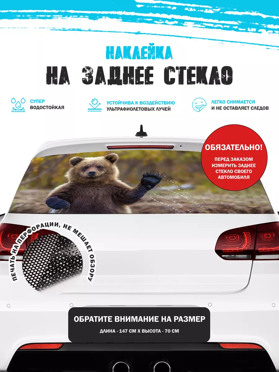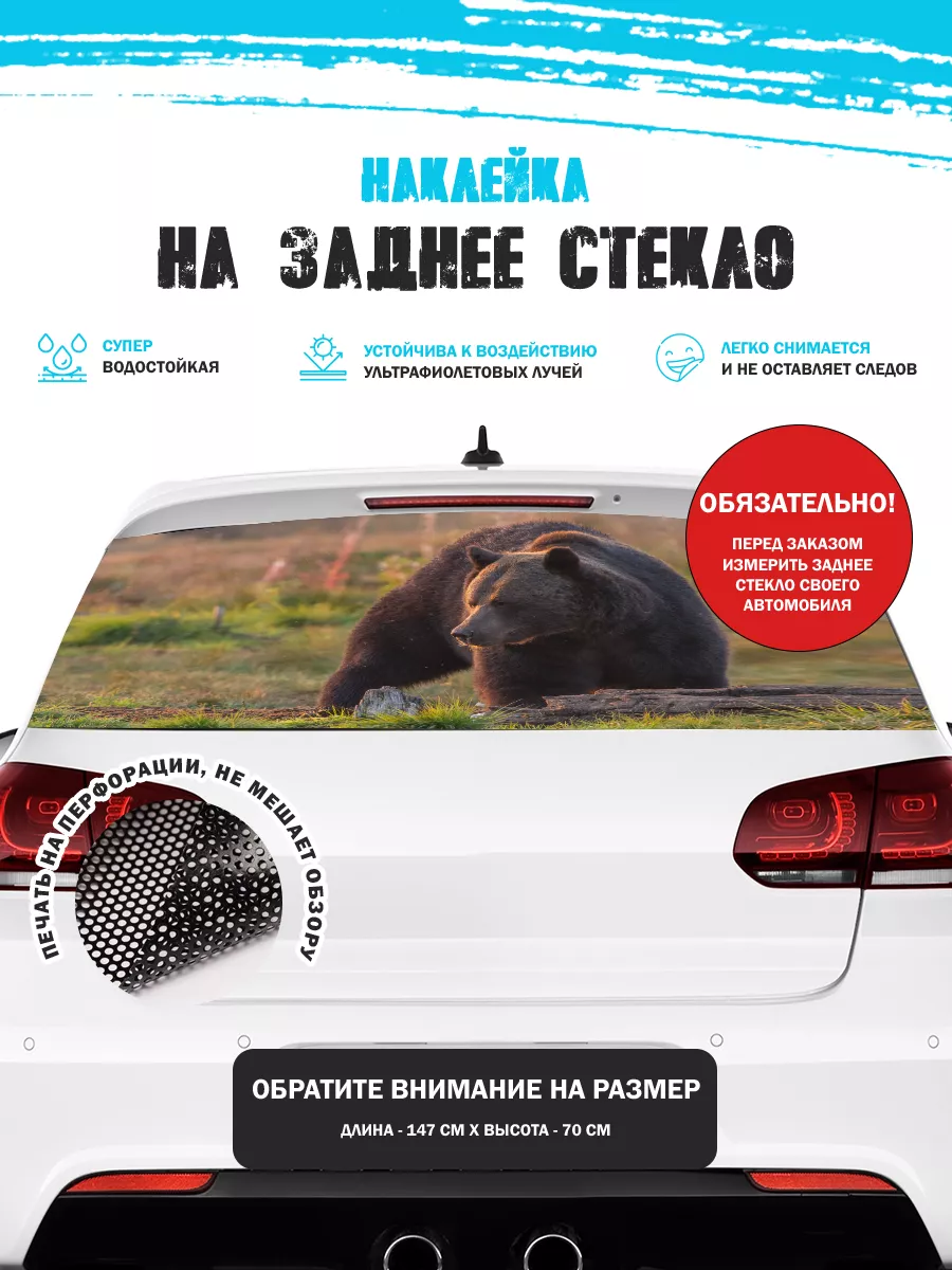 Преобразите внешний вид вашего авто с помощью большой наклейки – сетки на заднее стекло с изображением бурого медведя