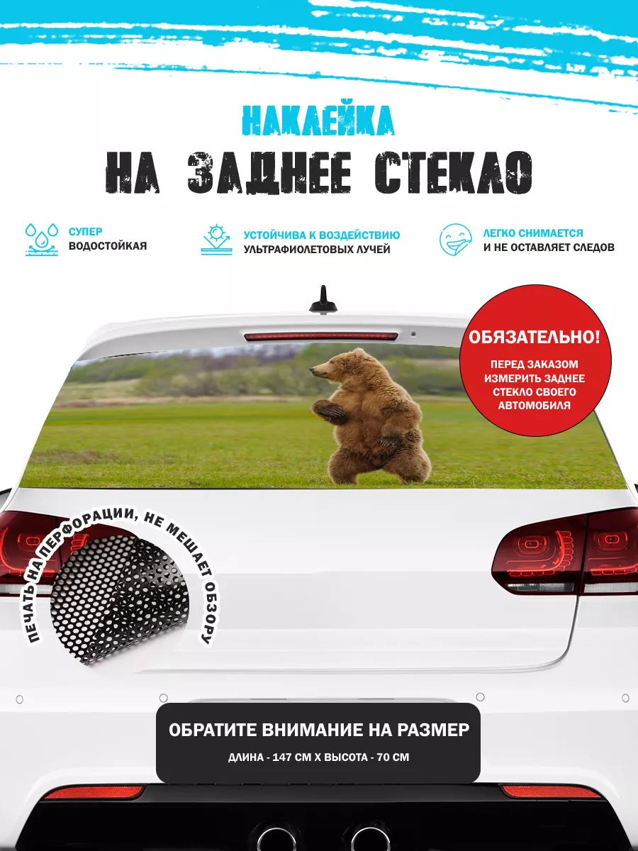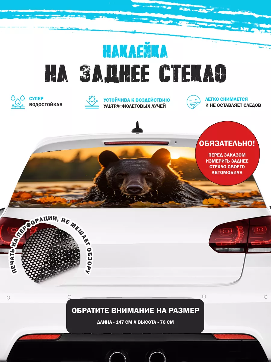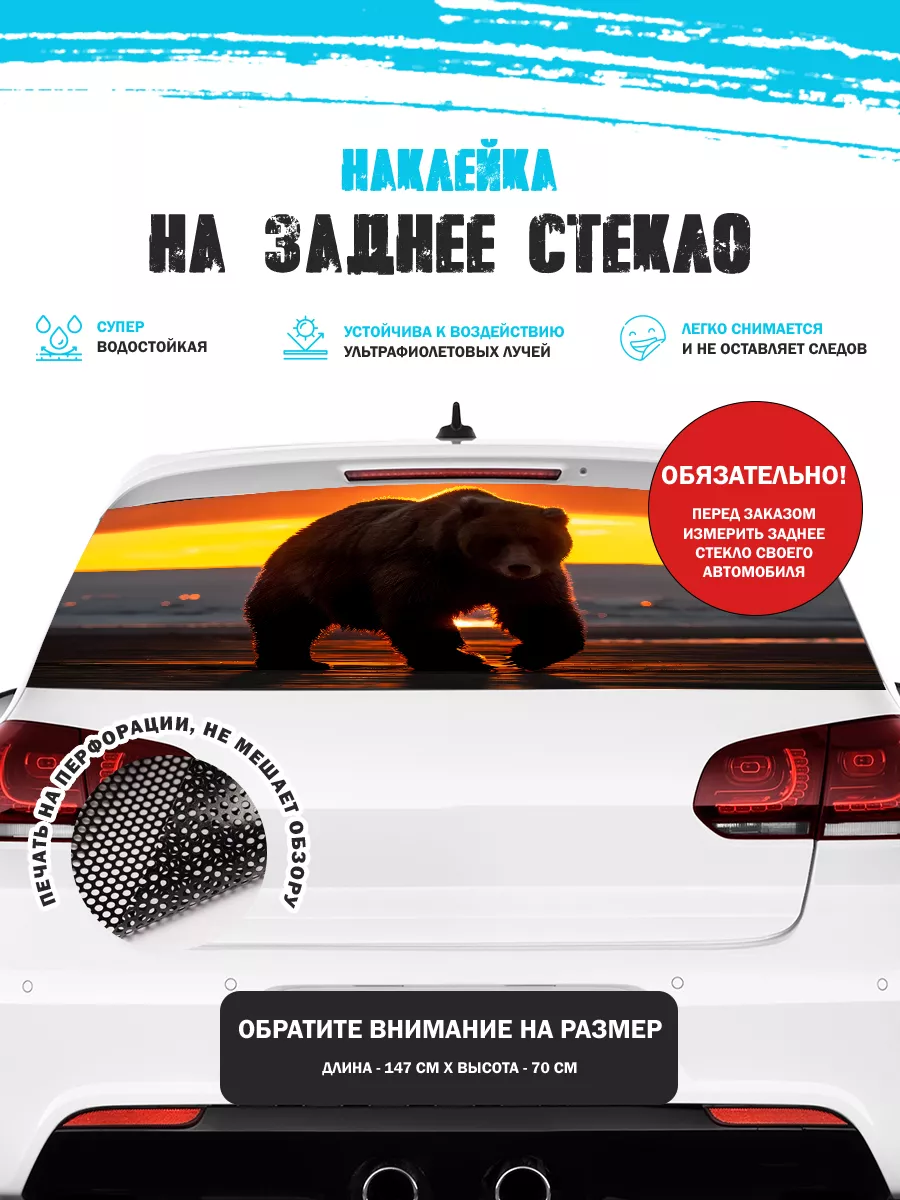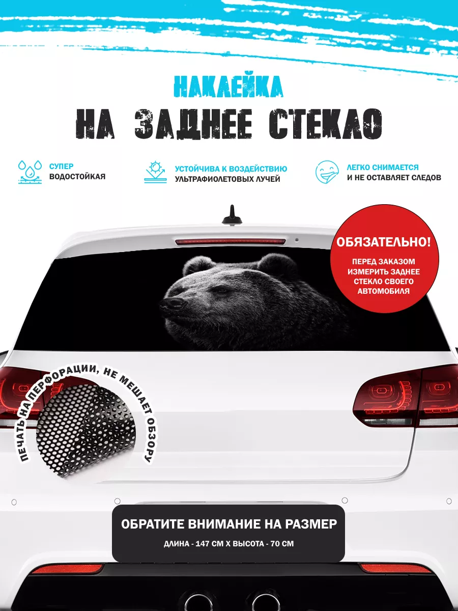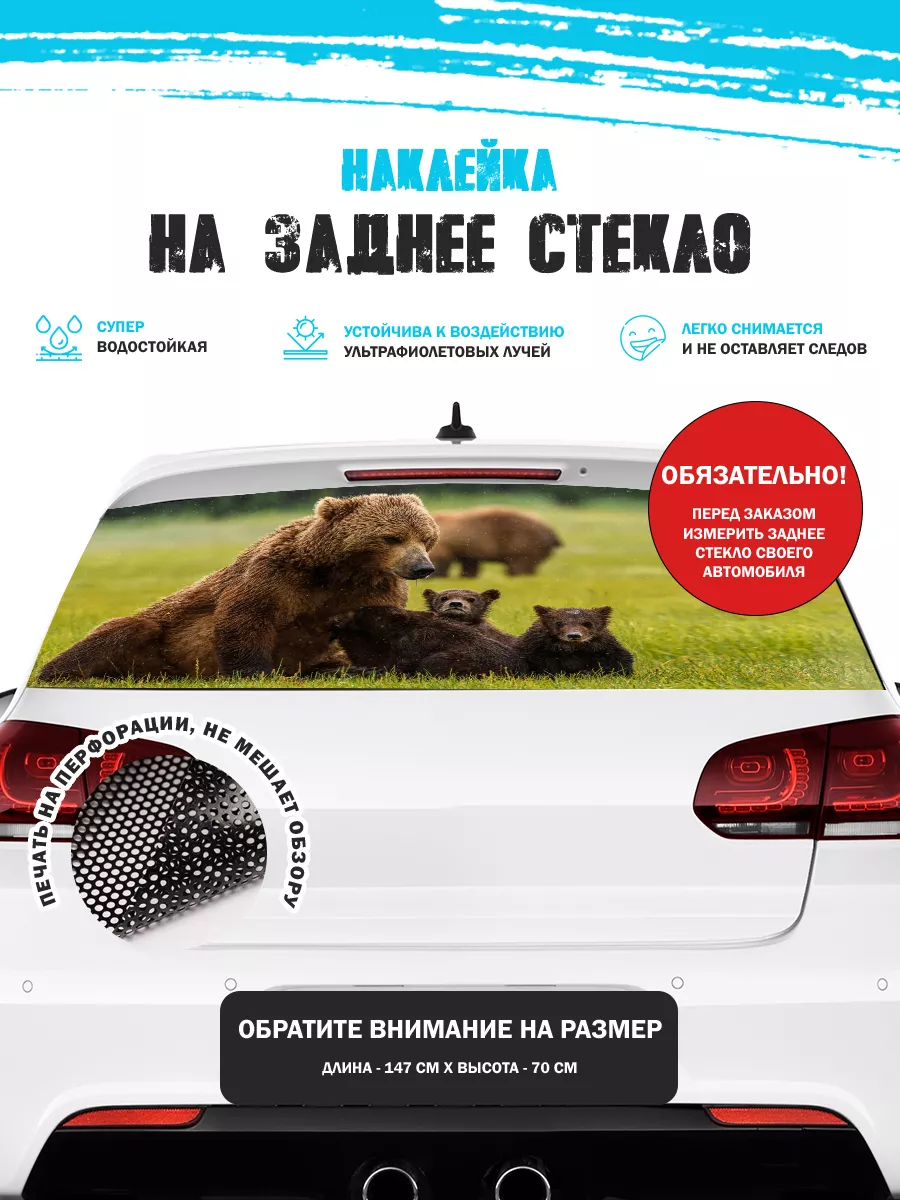 Преобразите внешний вид вашего авто с помощью большой наклейки – сетки на заднее стекло с изображением бурого медведя
