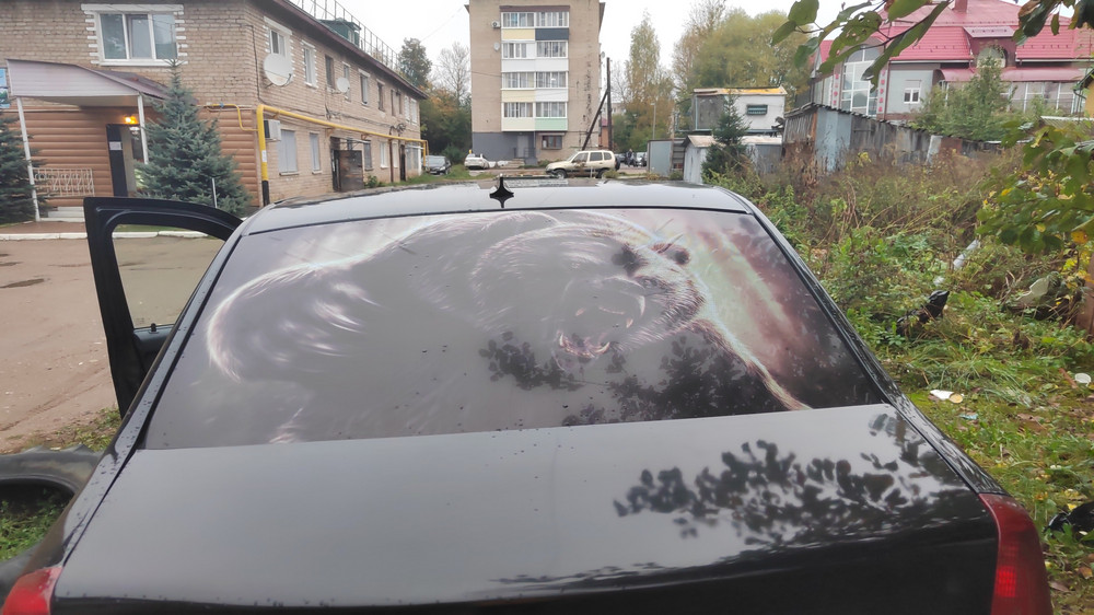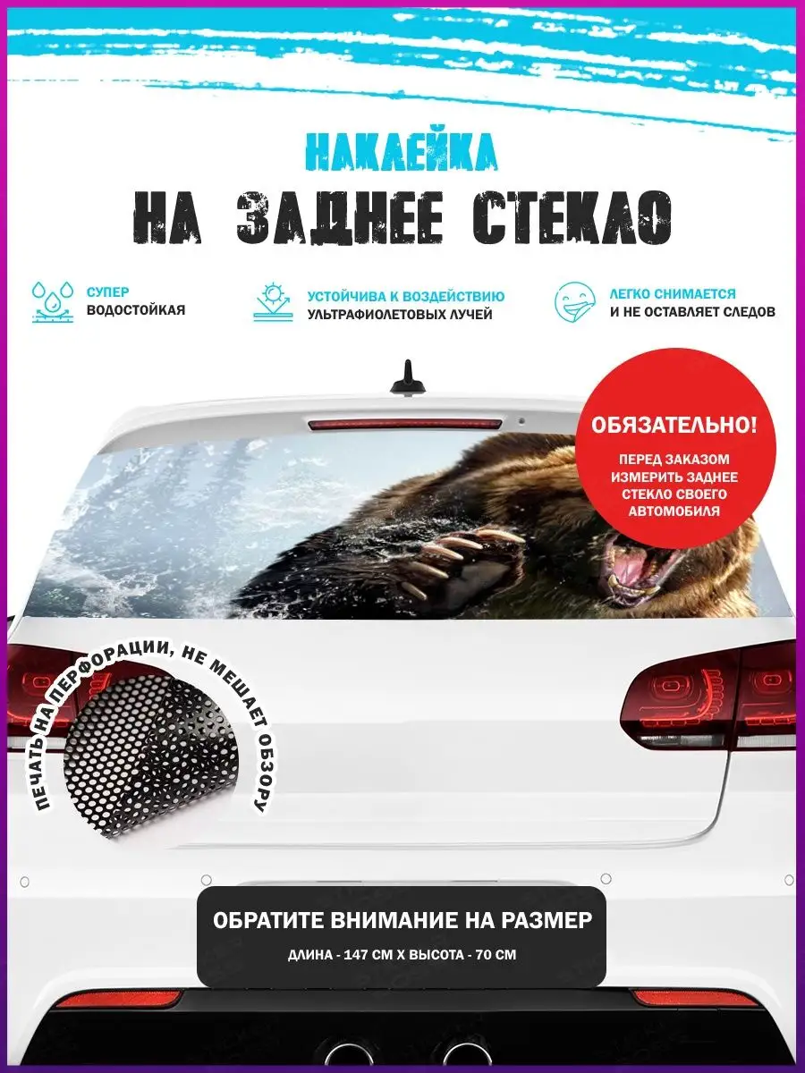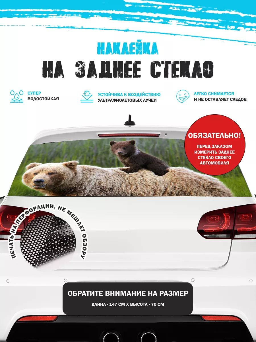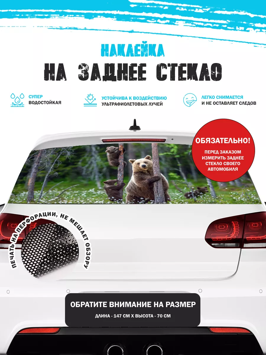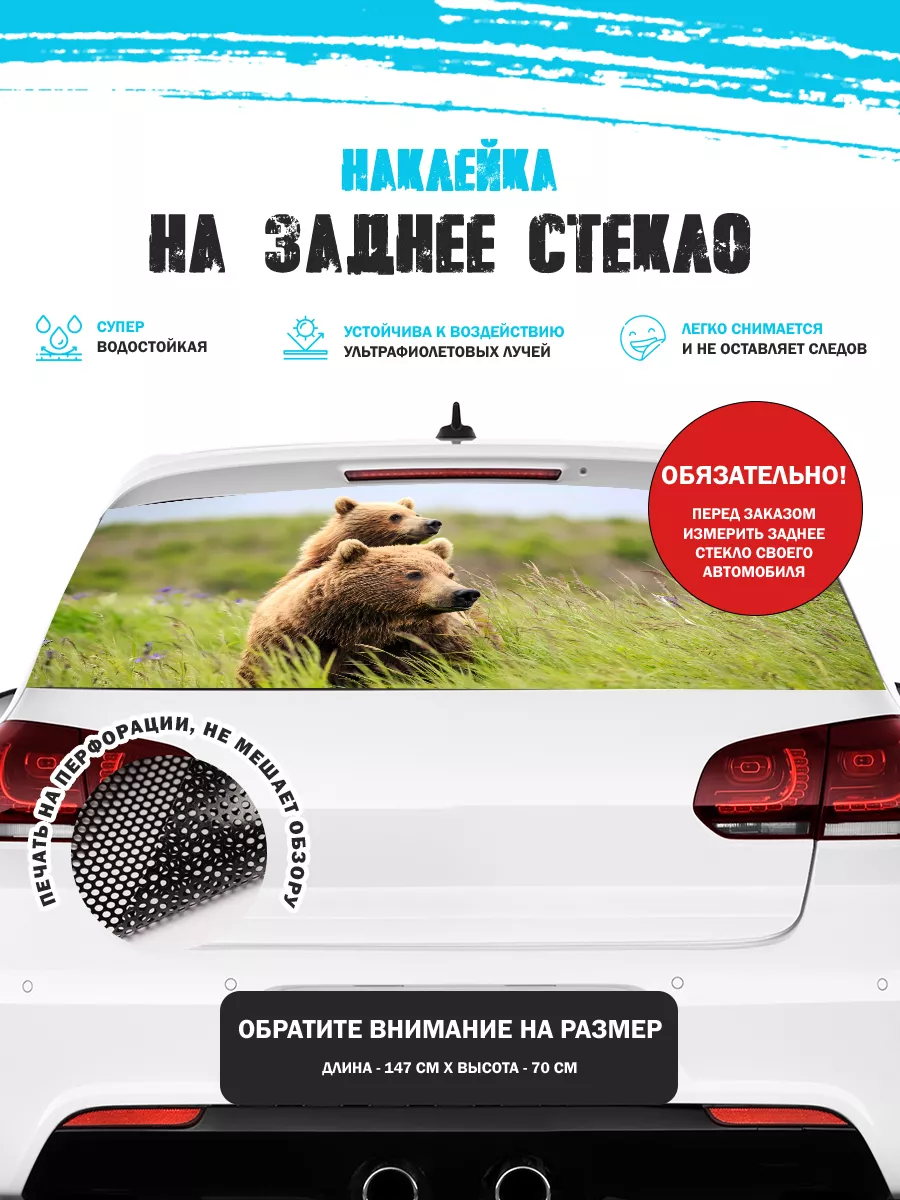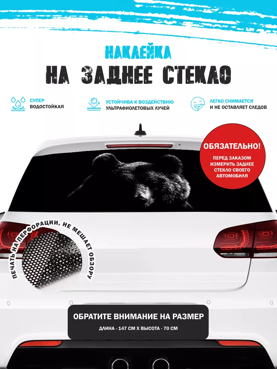 Преобразите внешний вид вашего авто с помощью большой наклейки – сетки на заднее стекло с изображением бурого медведя
