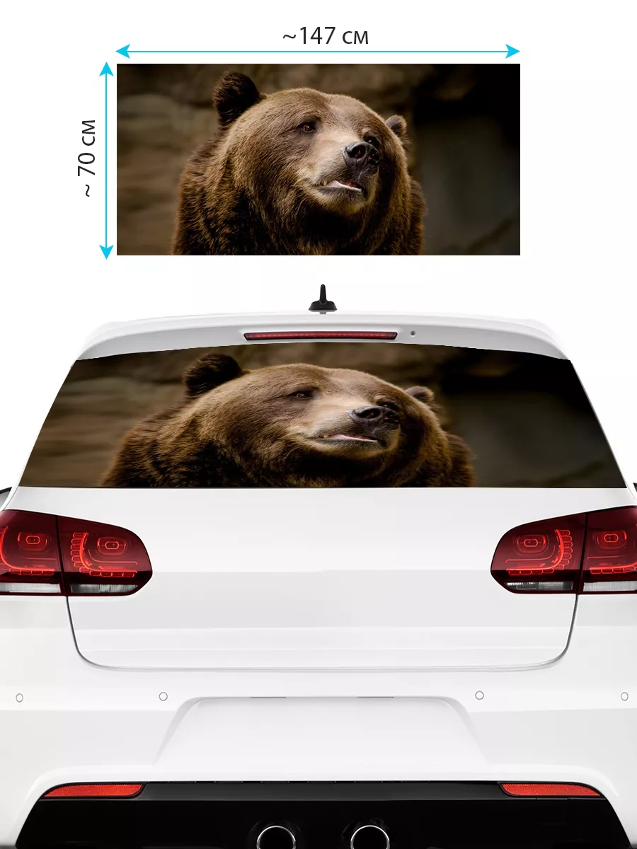 Преобразите внешний вид вашего авто с помощью большой наклейки – сетки на заднее стекло с изображением бурого медведя