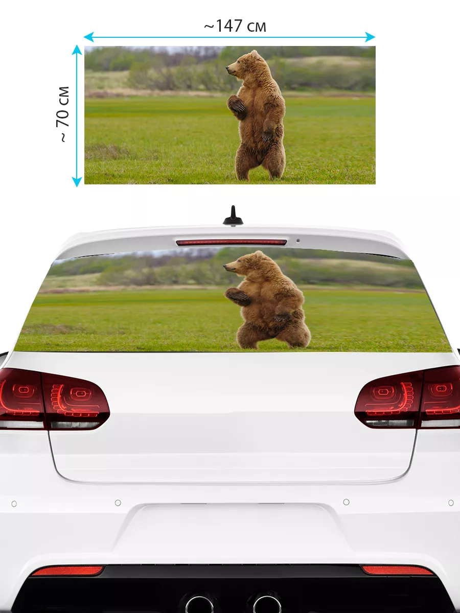 Преобразите внешний вид вашего авто с помощью большой наклейки – сетки на заднее стекло с изображением бурого медведя