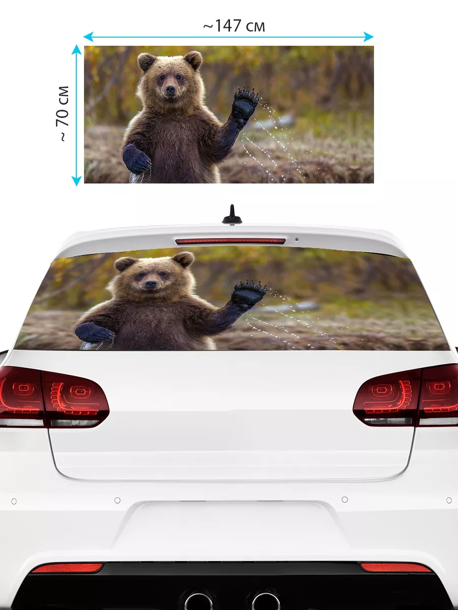 Преобразите внешний вид вашего авто с помощью большой наклейки – сетки на заднее стекло с изображением бурого медведя