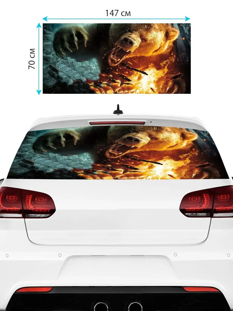 Преобразите внешний вид вашего авто с помощью большой наклейки – сетки на заднее стекло с изображением бурого медведя