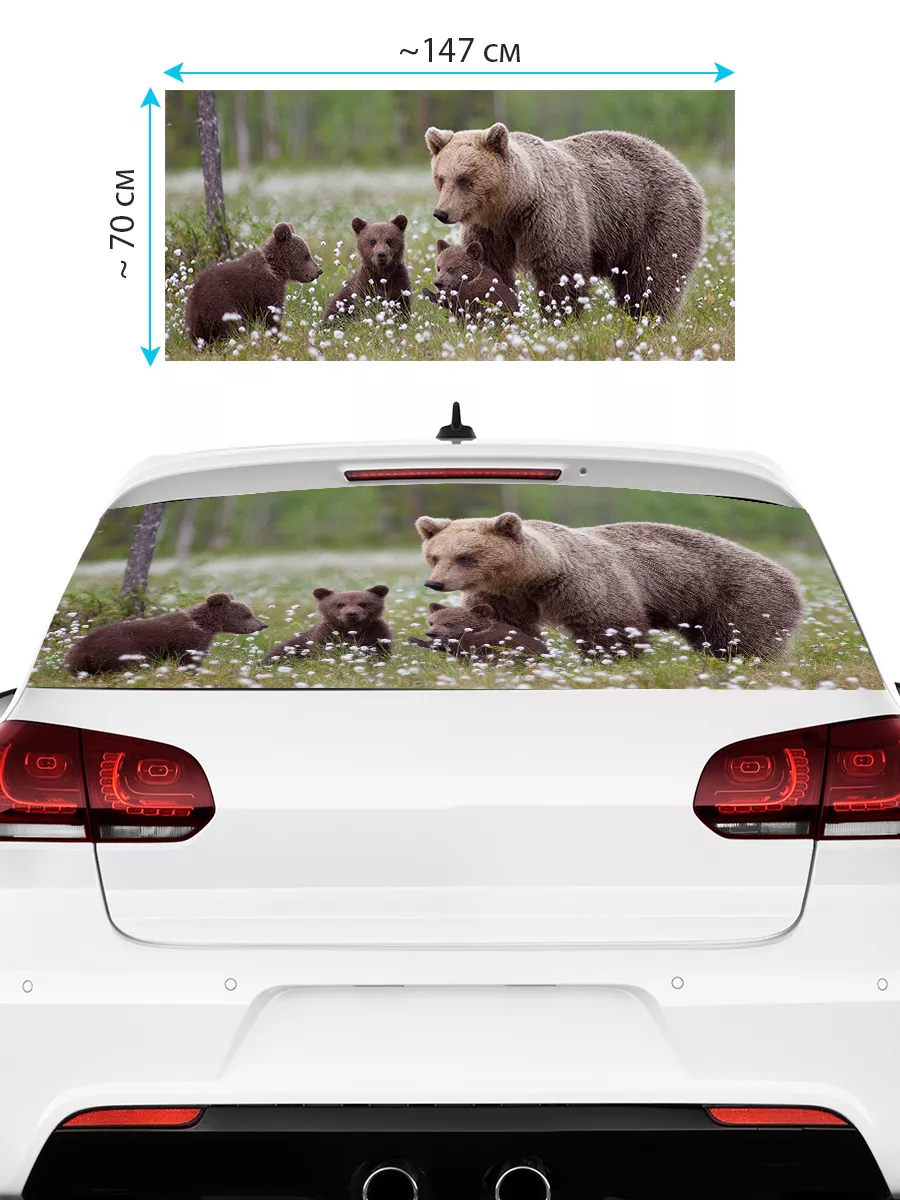 Преобразите внешний вид вашего авто с помощью большой наклейки – сетки на заднее стекло с изображением бурого медведя