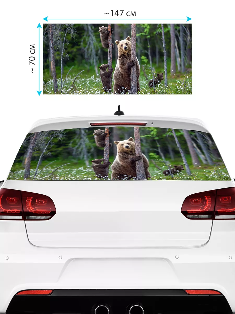 Преобразите внешний вид вашего авто с помощью большой наклейки – сетки на заднее стекло с изображением бурого медведя