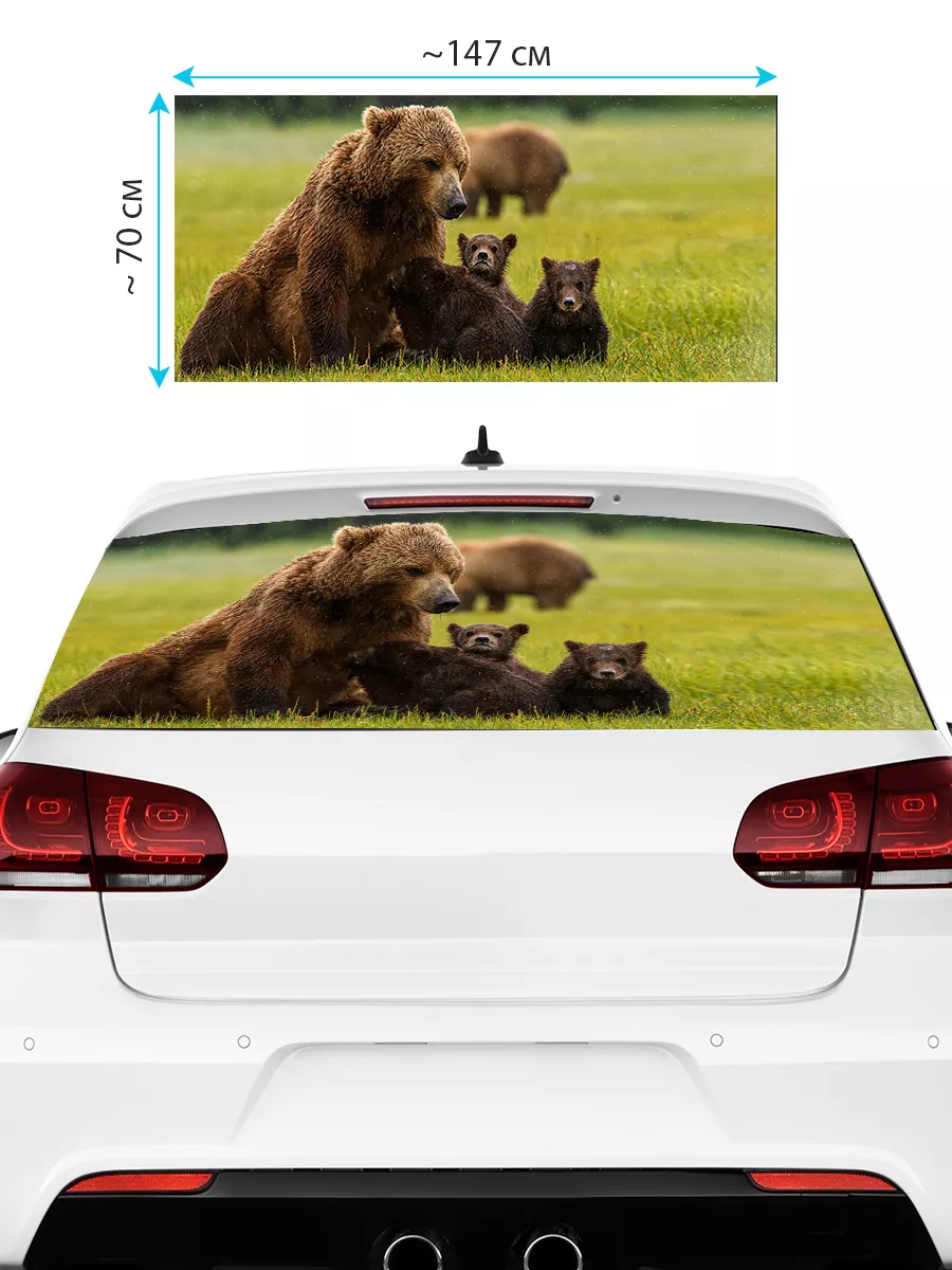 Преобразите внешний вид вашего авто с помощью большой наклейки – сетки на заднее стекло с изображением бурого медведя