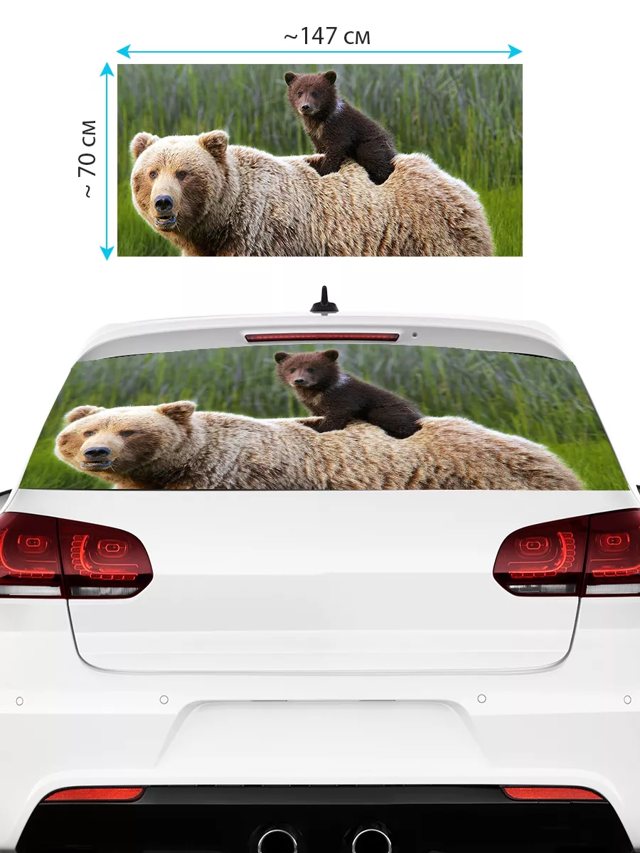 Преобразите внешний вид вашего авто с помощью большой наклейки – сетки на заднее стекло с изображением бурого медведя