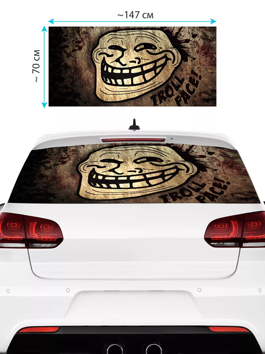 Большая декоративная наклейка на заднее стекло автомобиля размером 150×70 см. Перфорированная виниловая пленка ПВХ обеспечивает крепление, защиту от влаги и солнечных лучей, сохраняя яркость цветов. Возможны варианты с различными принтами и изображениями, включая надписи, героев известных фильмов, аниме, флаги, города и прочие мотивы. Наклейка упакована в защитную тубу и легко снимается без следов.