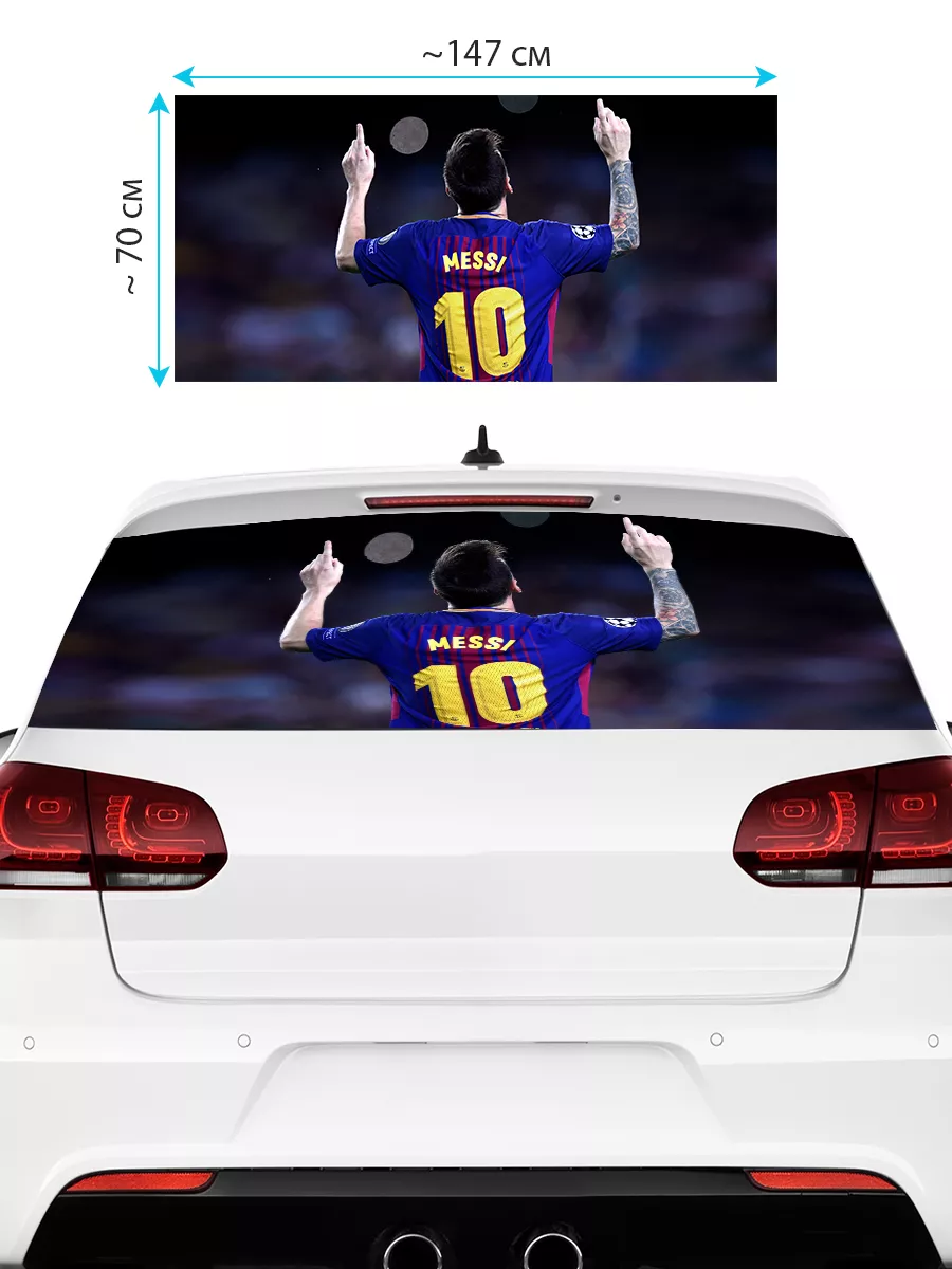 Большая декоративная наклейка на заднее стекло автомобиля в виде перфорированной сетки. Размер 150×70 см обеспечивает заметное оформление большинства кузовов, будь то седан, хэтчбек или универсал.