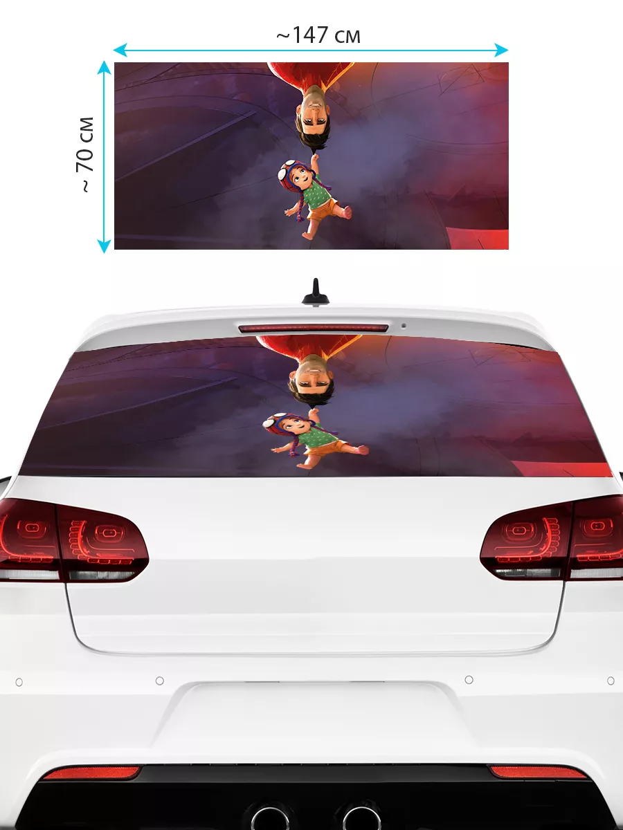 Наклейка на заднее стекло авто мультфильм предоставляет стильный акцент для вашего автомобиля. Сетка с перфорированной поверхностью дополняет визуальный образ, не мешая обзору и сохраняет функциональность стекла.