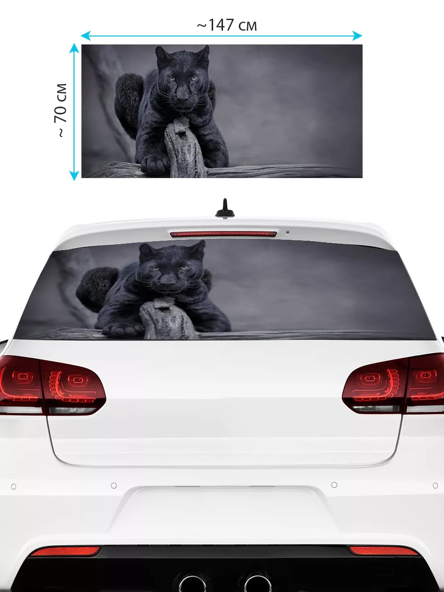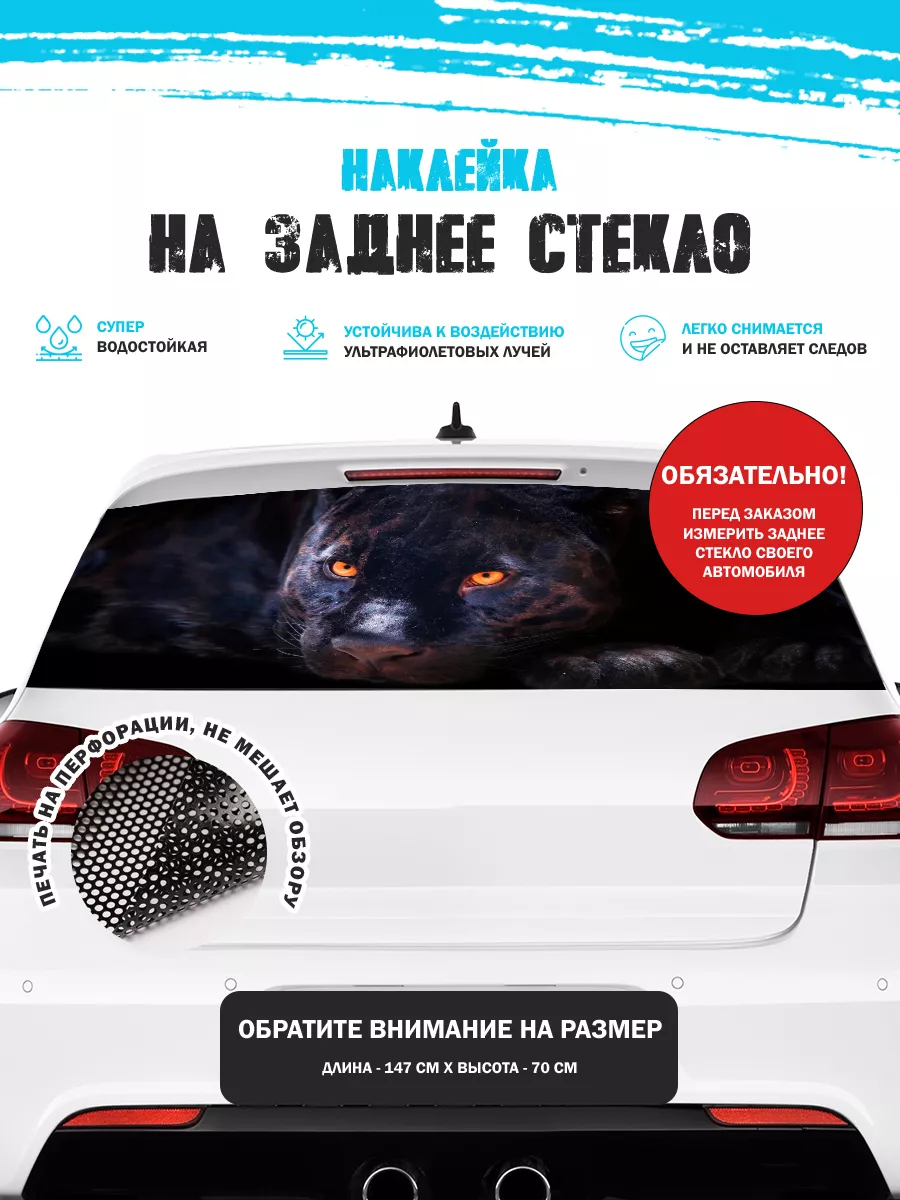 Наклейка на заднее стекло авто с пантерой выполнена на перфорированной виниловой пленке ПВХ размером 150x70 см. Перфорация по всей площади обеспечивает красивый внешний вид и частичную приватность пассажиров. Подходит для большинства популярных автомобилей: седан, хэтчбек и универсал.