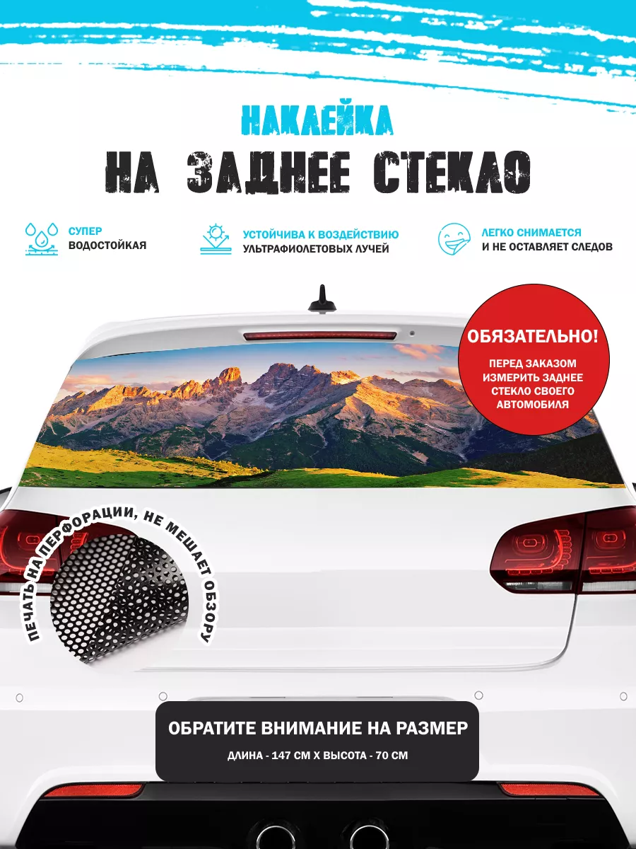 Преобразите внешний вид вашего авто с помощью большой наклейки - сетки на заднее стекло с изображением горного пейзажа