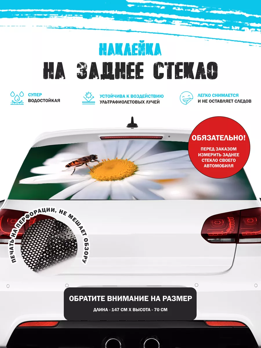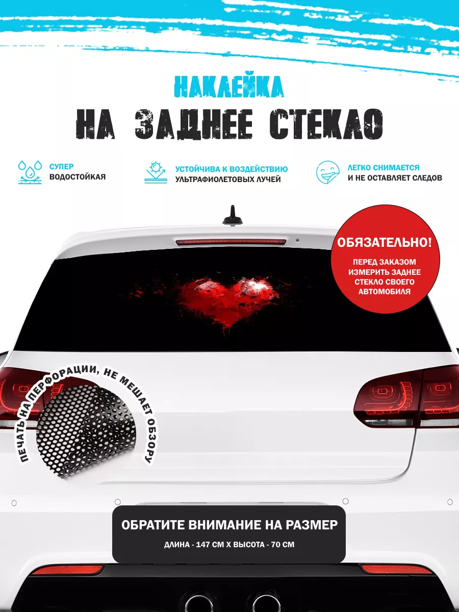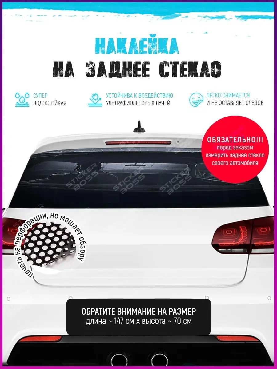 Эта наклейка на заднее стекло создаёт яркий акцент на вашем автомобиле. Размер 150x70 см делает её заметной и подходящей для большинства автомобильных стекол. Перфорированная самоклеящаяся виниловая пленка ПВХ обеспечивает прочное крепление и защиту от влаги и солнечных лучей. При желании можно подрезать лист под нужный размер. Удаляется без следов.