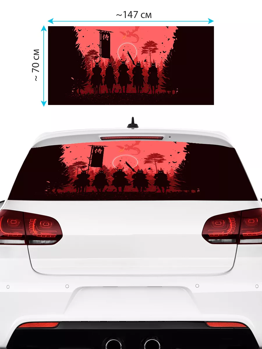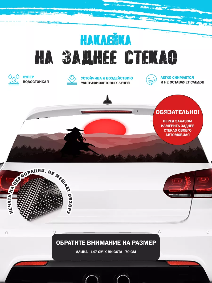 Преобразите внешний вид вашего автомобиля с помощью большой наклейки - сетки на заднее стекло с изображением самурая! Этот воин в японском стиле добавит вашему транспортному средству уникальности и выразительности