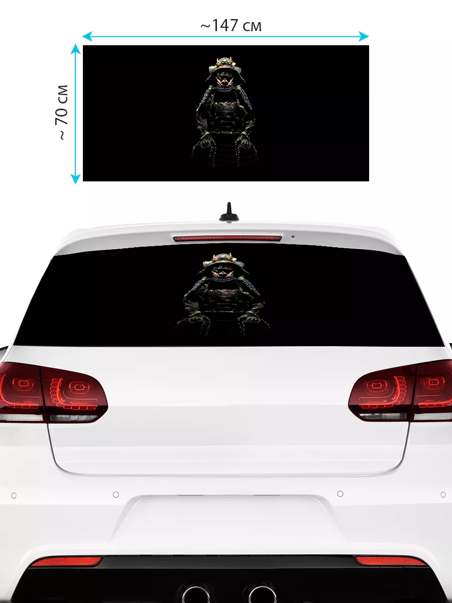 Преобразите внешний вид вашего автомобиля с помощью большой наклейки - сетки на заднее стекло с изображением самурая! Этот воин в японском стиле добавит вашему транспортному средству уникальности и выразительности