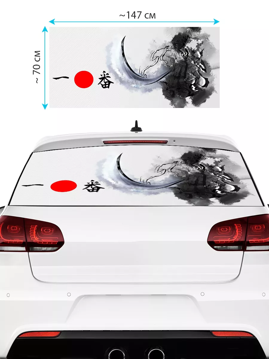 Преобразите внешний вид вашего автомобиля с помощью большой наклейки - сетки на заднее стекло с изображением самурая! Этот воин в японском стиле добавит вашему транспортному средству уникальности и выразительности