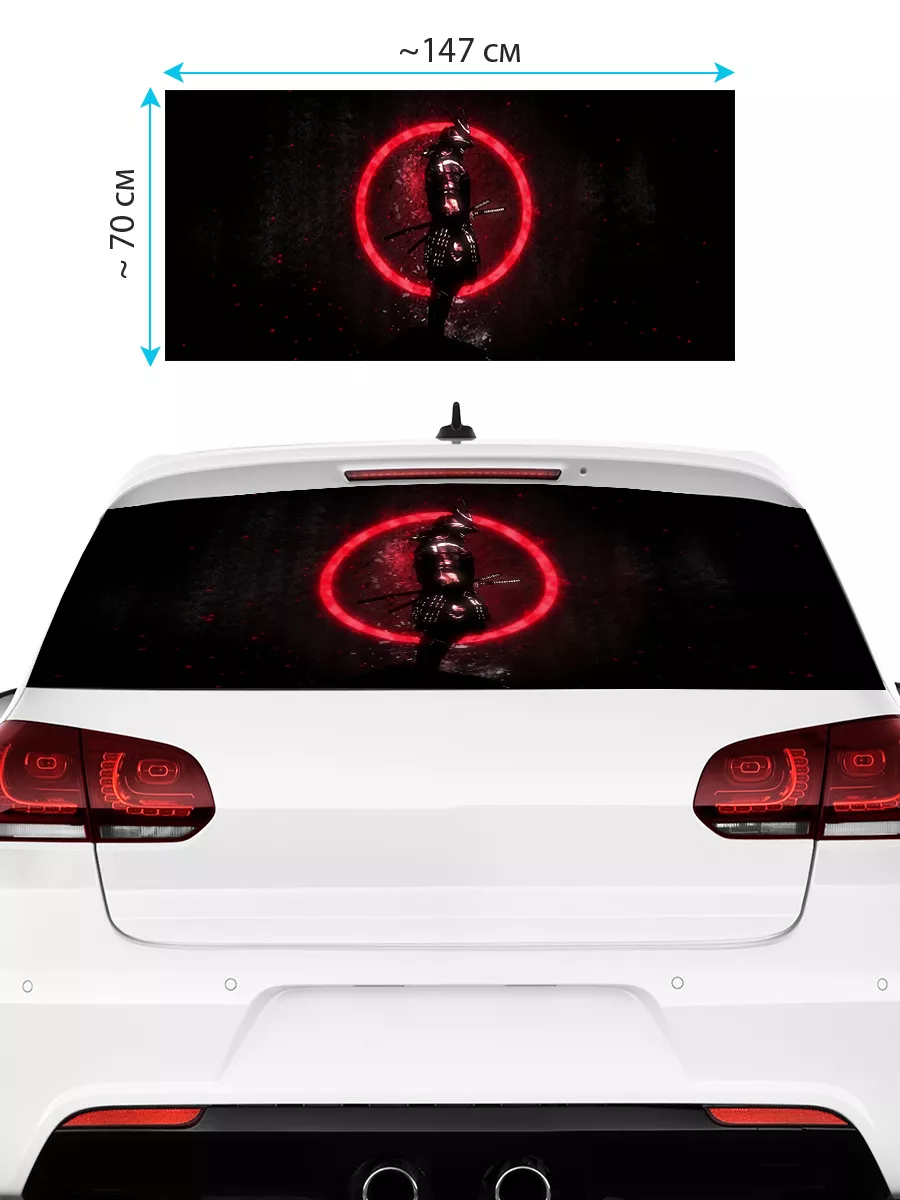 Преобразите внешний вид вашего автомобиля с помощью большой наклейки - сетки на заднее стекло с изображением самурая! Этот воин в японском стиле добавит вашему транспортному средству уникальности и выразительности