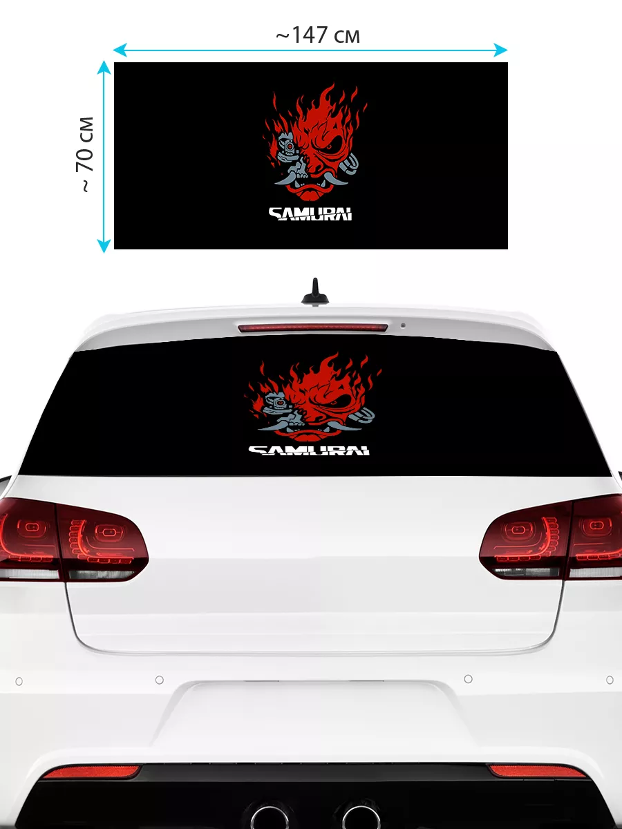 Преобразите внешний вид вашего автомобиля с помощью большой наклейки - сетки на заднее стекло с изображением самурая! Этот воин в японском стиле добавит вашему транспортному средству уникальности и выразительности