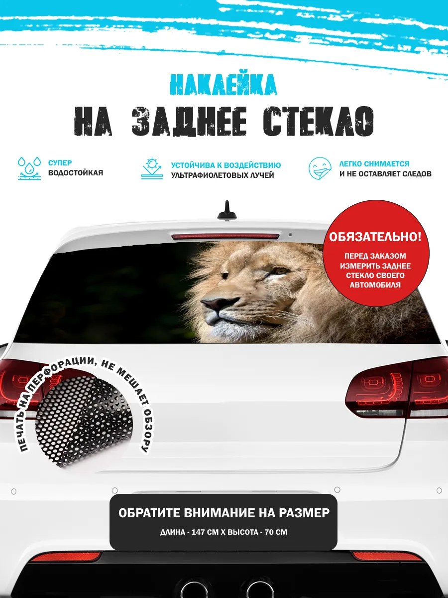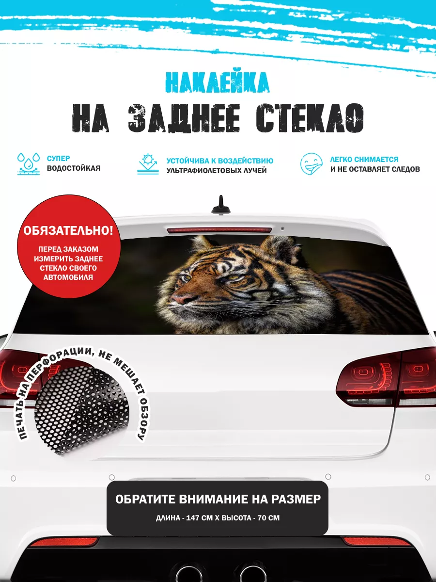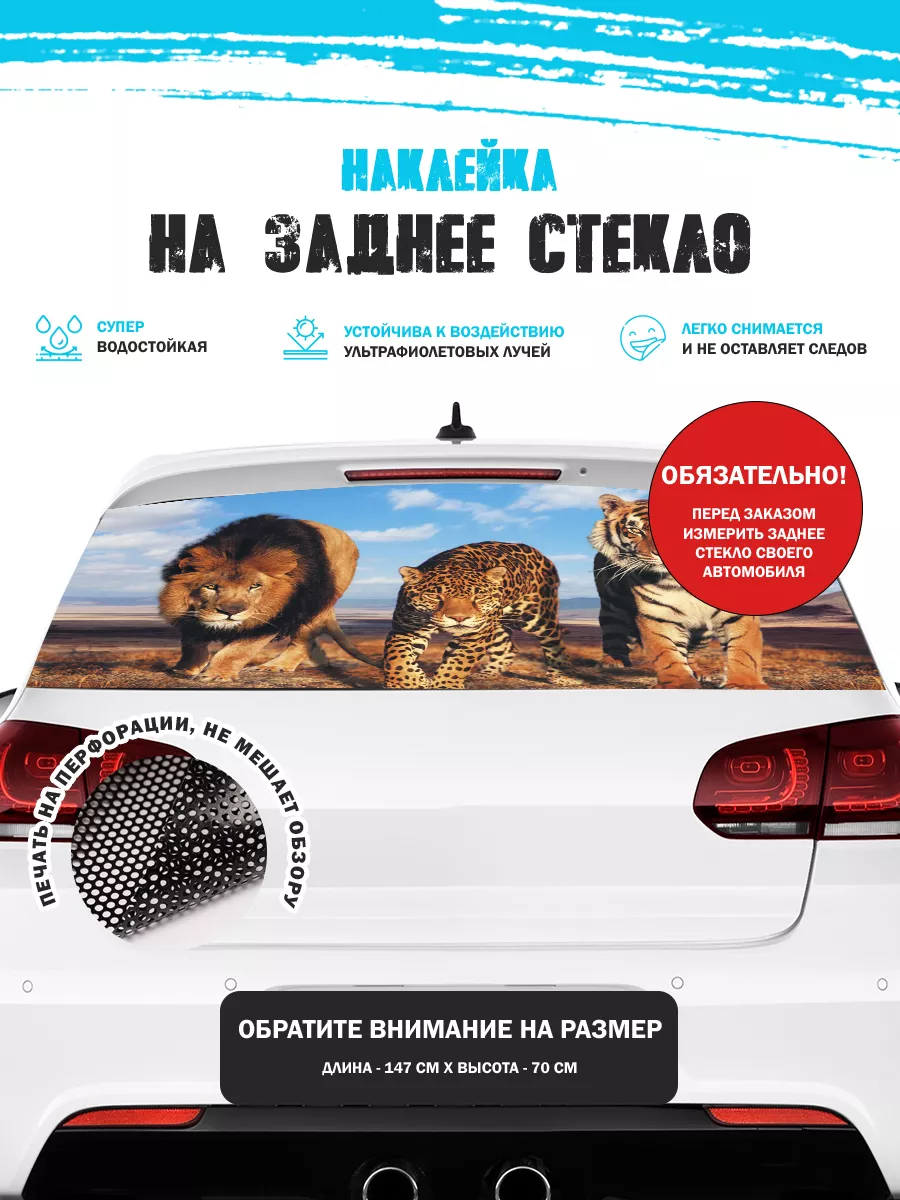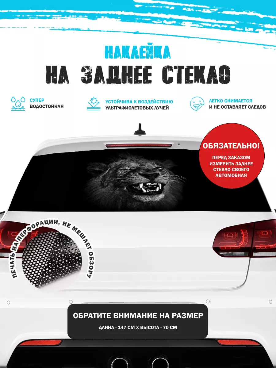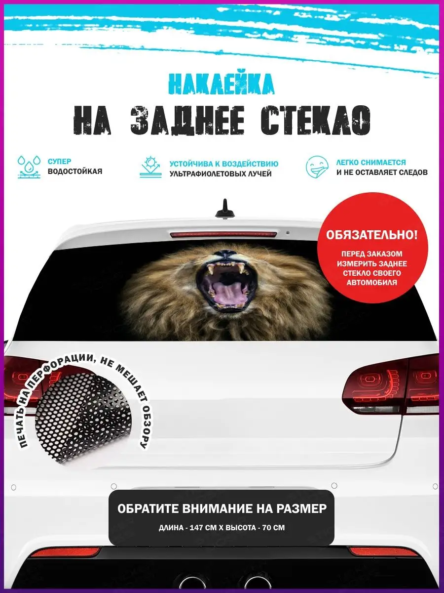 Большая декоративная наклейка на заднее стекло автомобиля выполнена из самоклеящейся виниловой пленки ПВХ с перфорацией. Размер 150x70 см подходит для большинства седанов, хэтчбеков и универсалов. При необходимости можно подрезать лист под нужный размер. Пленка устойчива к мойке, агрессивным погодным условиям, пыли и влаге, не выгорает на солнце. При желании легко снимается без следов.