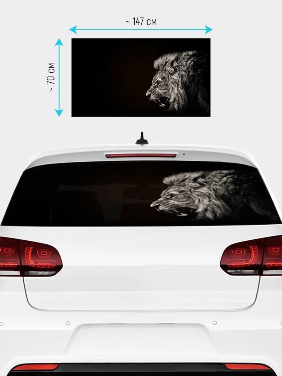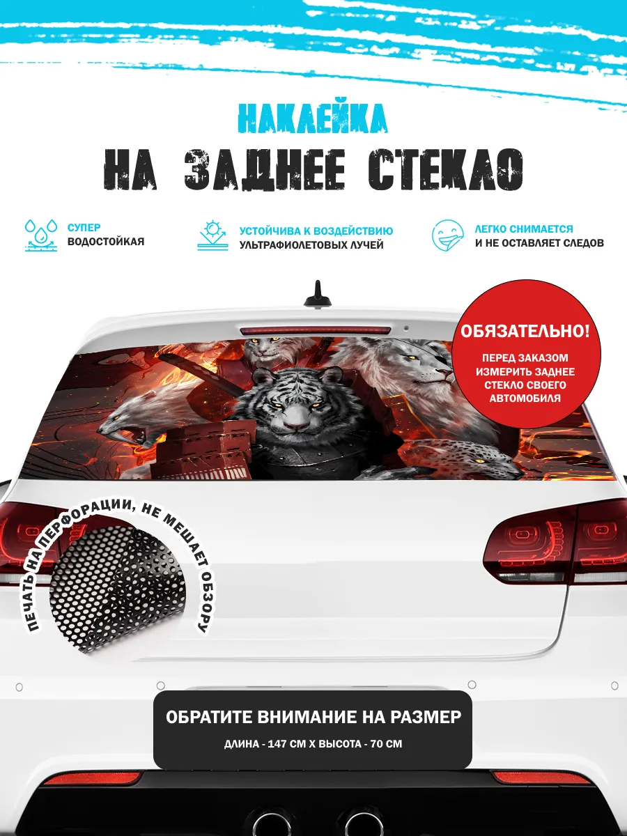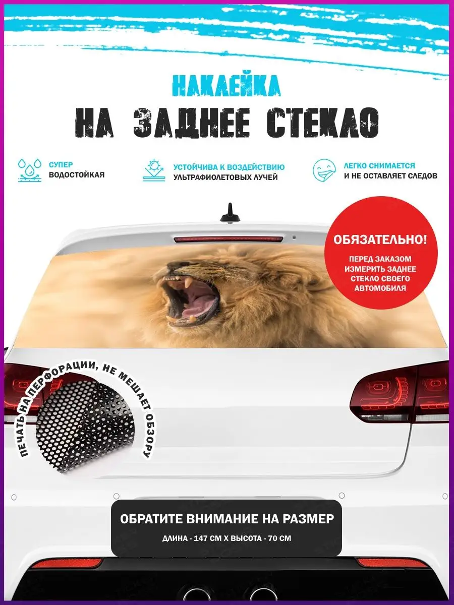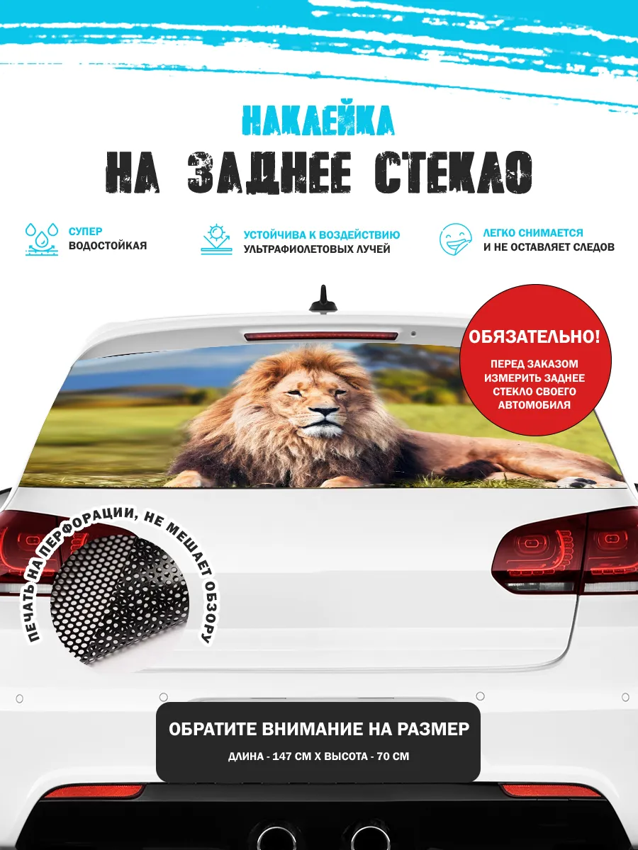 Большая декоративная наклейка на заднее стекло автомобиля выполнена из самоклеящейся виниловой пленки ПВХ с перфорацией. Размер 150x70 см подходит для большинства седанов, хэтчбеков и универсалов. При необходимости можно подрезать лист под нужный размер. Пленка устойчива к мойке, агрессивным погодным условиям, пыли и влаге, не выгорает на солнце. При желании легко снимается без следов.