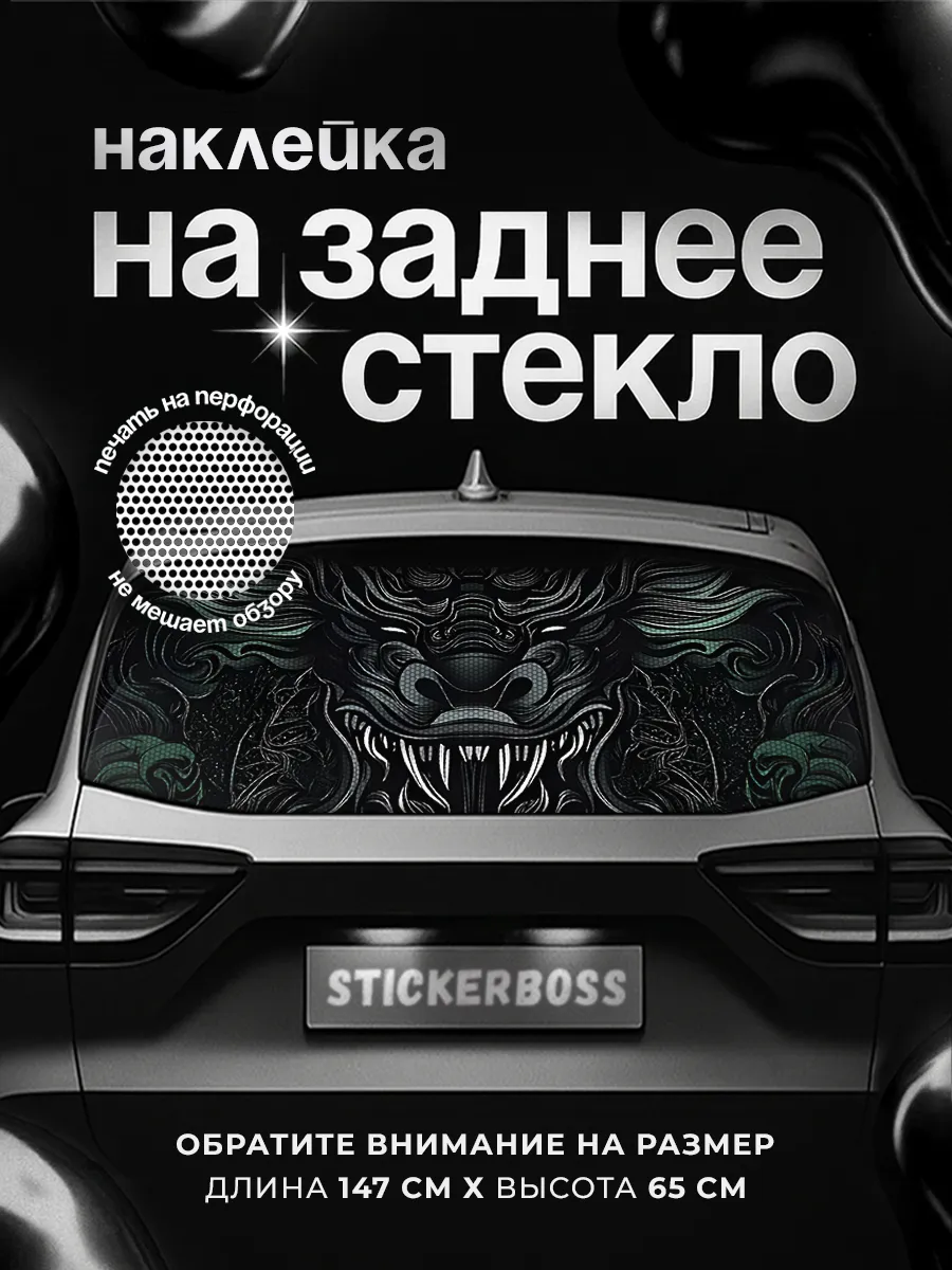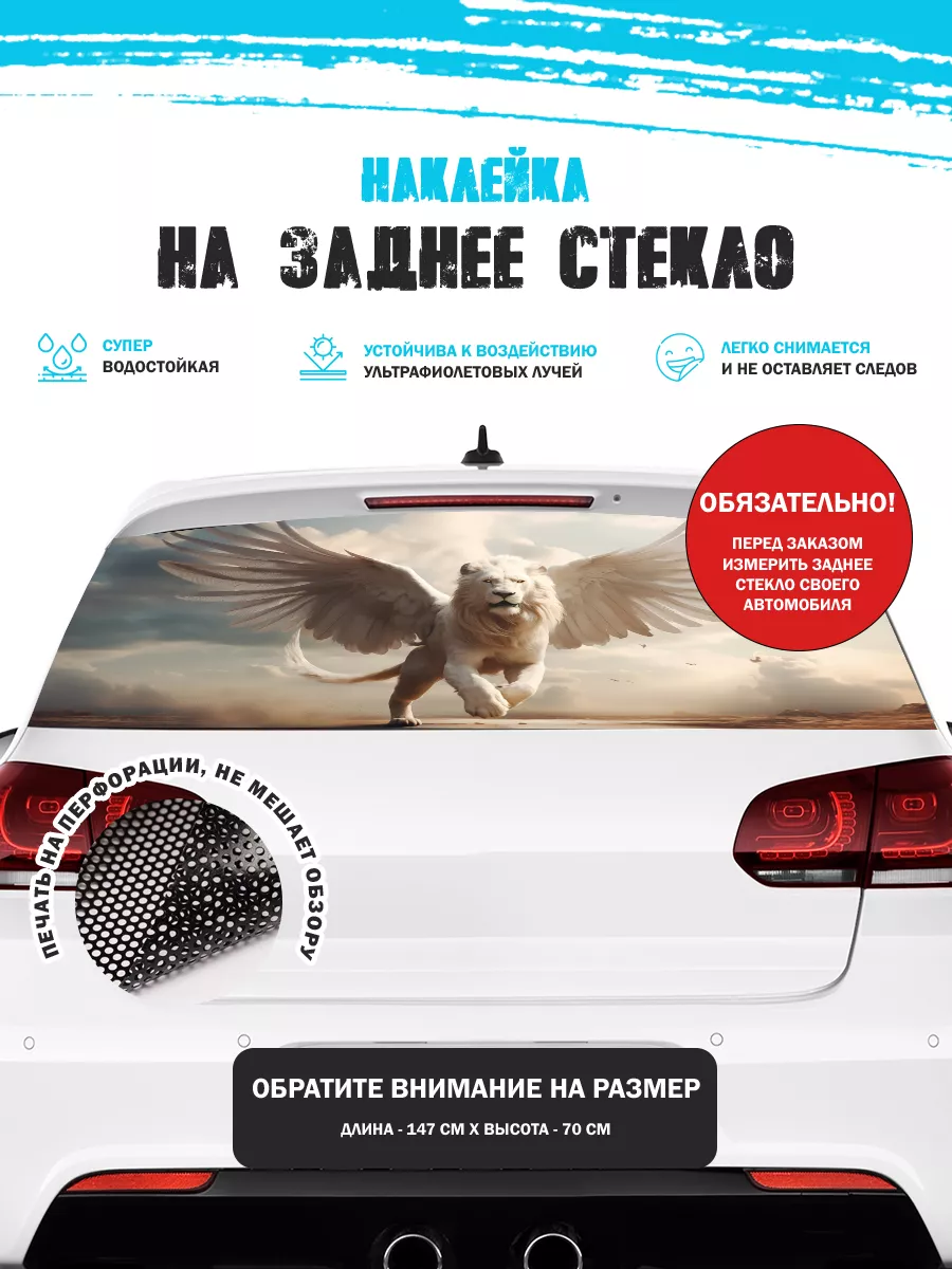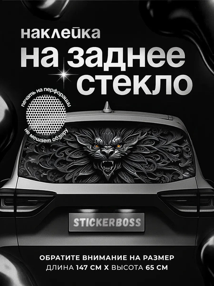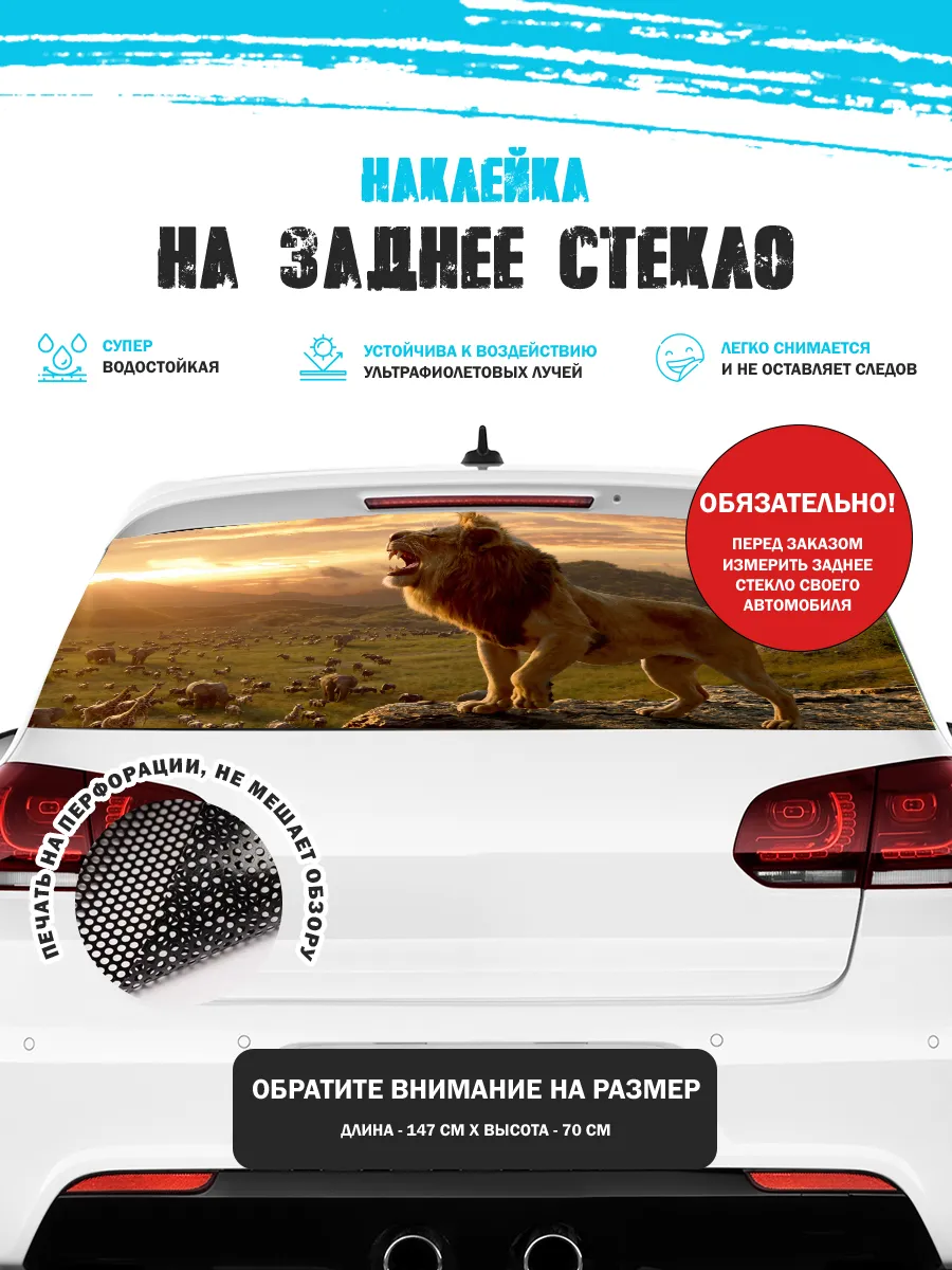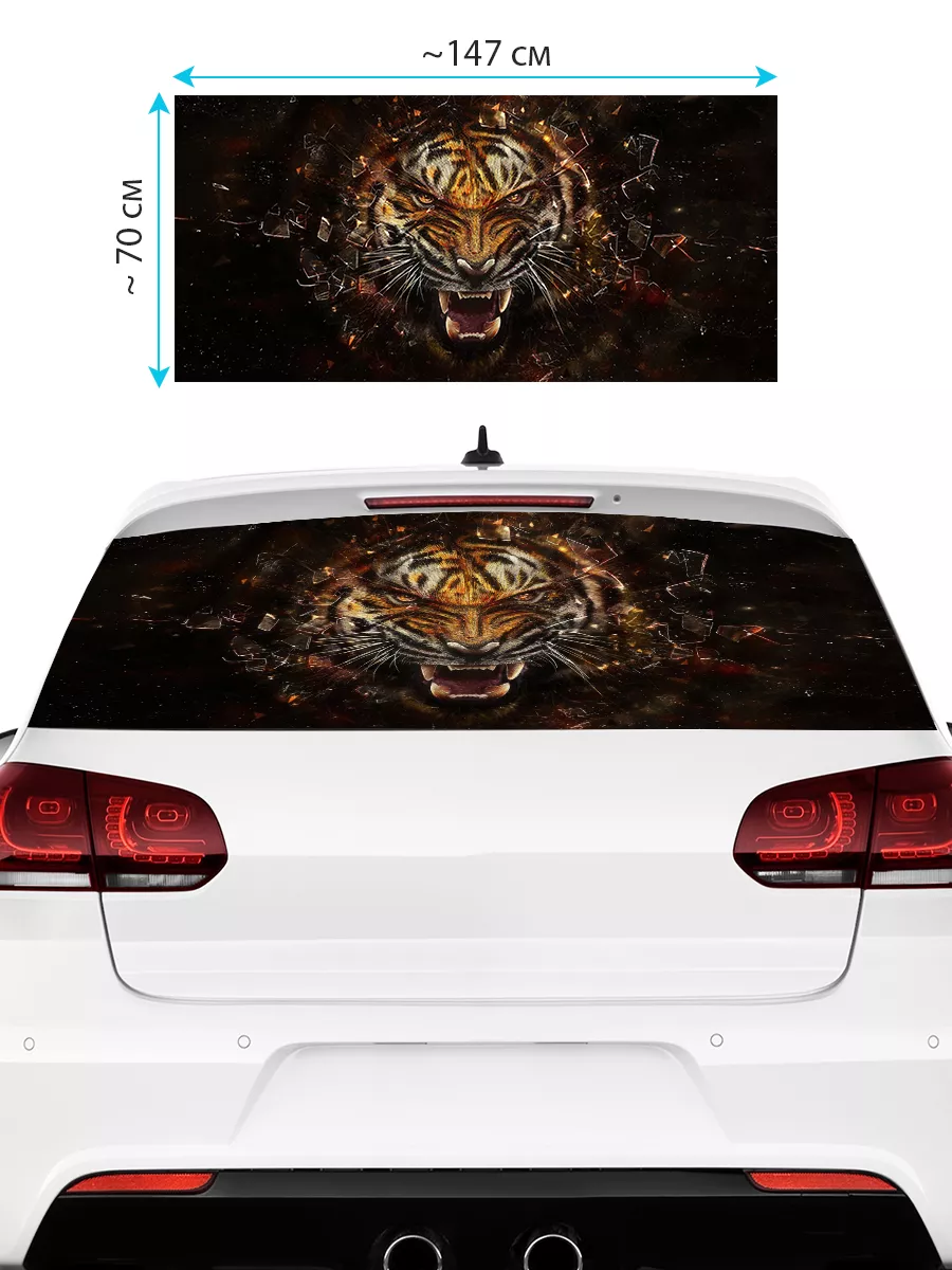 Большая декоративная наклейка на заднее стекло автомобиля выполнена из самоклеящейся виниловой пленки ПВХ с перфорацией. Размер 150x70 см подходит для большинства седанов, хэтчбеков и универсалов. При необходимости можно подрезать лист под нужный размер. Пленка устойчива к мойке, агрессивным погодным условиям, пыли и влаге, не выгорает на солнце. При желании легко снимается без следов.