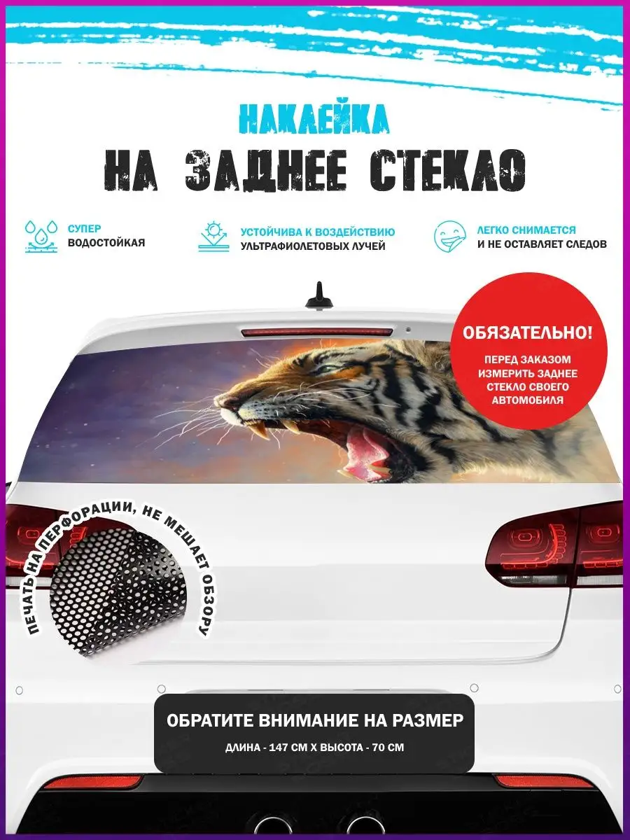 Назначение — декоративная наклейка на заднее стекло автомобиля. Подходит для седанов, хэтчбеков и универсалов. При необходимости можно подрезать лист под нужный размер. Наклейка гармонично сочетается с другими декоративными элементами и позволяет скрыть часть обзора за счет перфорированной структуры.