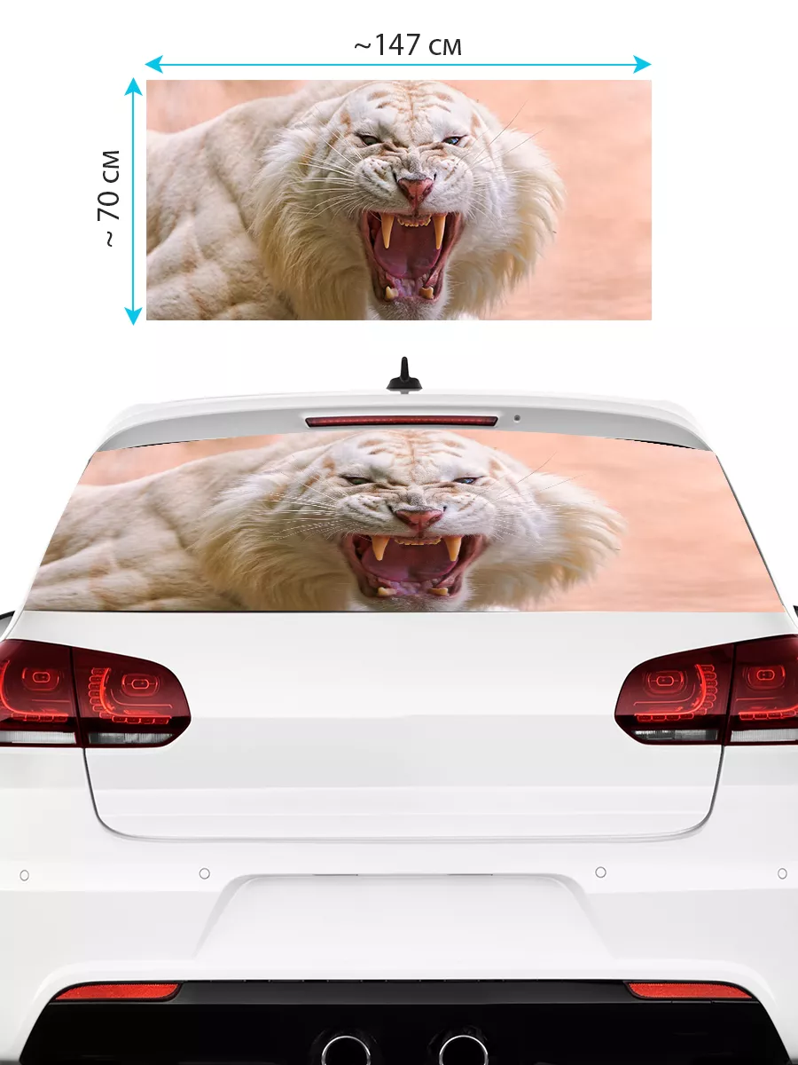 Эта наклейка предназначена для заднего стекла автомобиля и представляет собой крупный декоративный рисунок тигра. Универсальный размер 150x70 см позволяет оклеить стекло большинства седанов, хэтчбеков и универсалов. При необходимости можно подрезать лист под нужный размер. Наклейка изготовлена из самоклеящейся виниловой перфорированной пленки ПВХ, которая обеспечивает прочное крепление к поверхности и стойкость к мытью, пыли и агрессивным погодным условиям; легко снимается без следов.