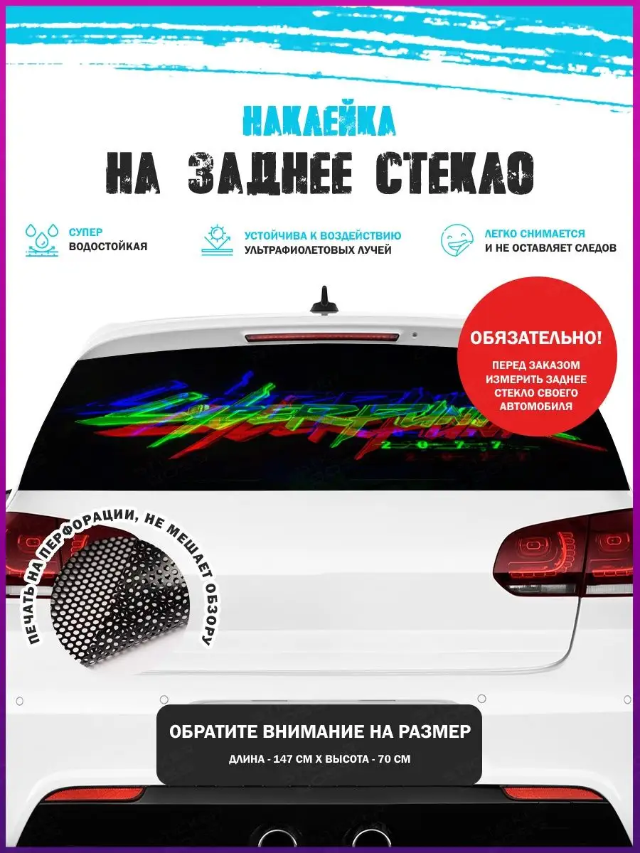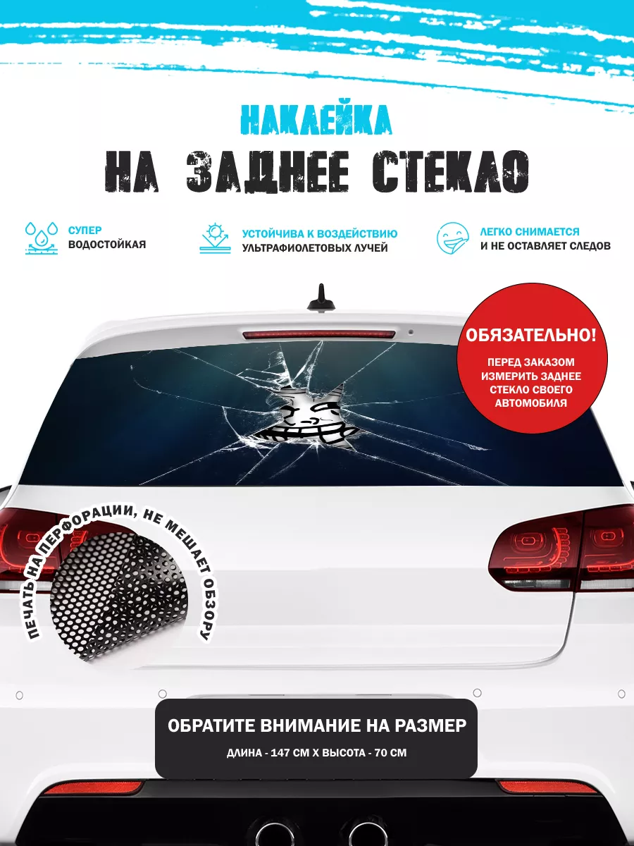 Большая декоративная наклейка на заднее стекло автомобиля служит эффектным акцентом, подчеркивая индивидуальность машины. Универсальный размер 150x70 см подходит большинству популярных моделей седан, хэтчбек и универсал. По желанию можно подрезать лист под нужный размер. Наклейка выполнена из самоклеящейся виниловой перфорированной пленки ПВХ, которая обеспечивает надежное приклеивание к поверхности, стойкость к мытью и агрессивным погодным условиям, пыли и влаге, не выгорает на солнце. При необходимости легко снимается без следов на стекле.