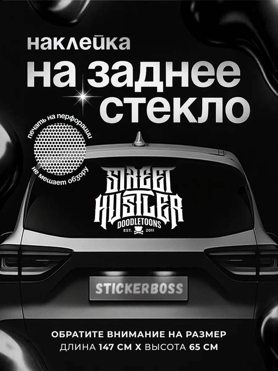 Подходит для стекла задней двери и заднего стекла большинства авто; при необходимости можно подрезать лист под нужный размер. Наклейка сохраняет стиль и не мешает обзору через стекло.
