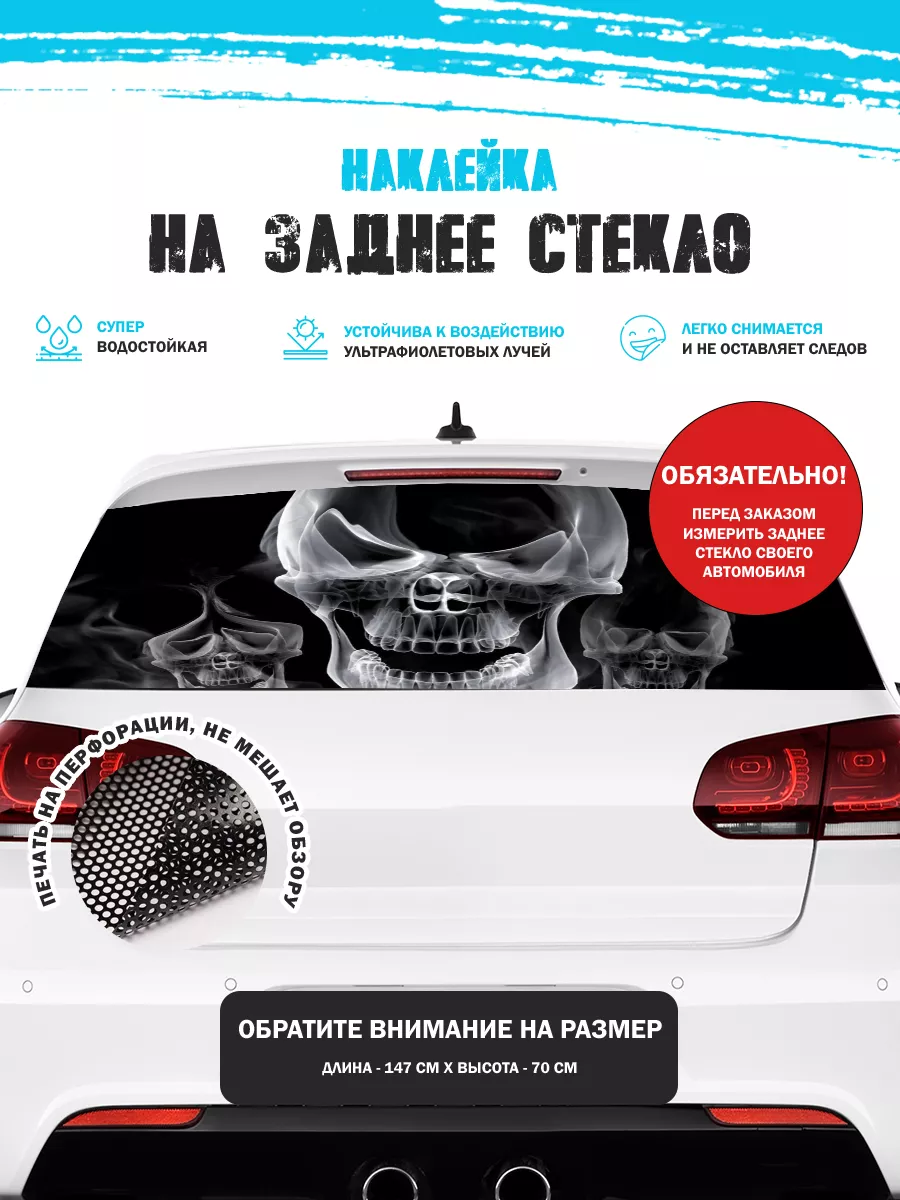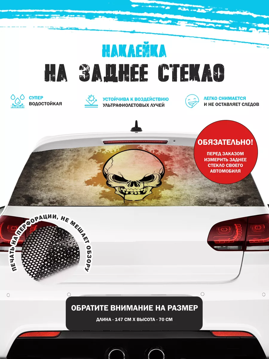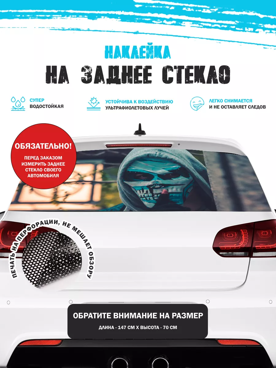 Эта наклейка на заднее стекло автомобиля позволяет придать яркий стиль без изменения кузова. Размер 150х70 см подходит для седанов, хэтчбеков и универсалов. При необходимости можно подрезать лист под нужный размер. Перфорированная самоклеящаяся виниловая пленка ПВХ обеспечивает долговечность и удобство использования.