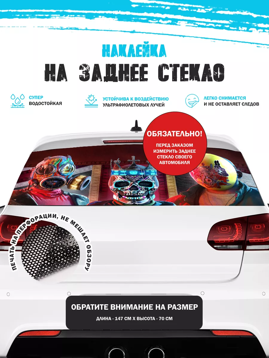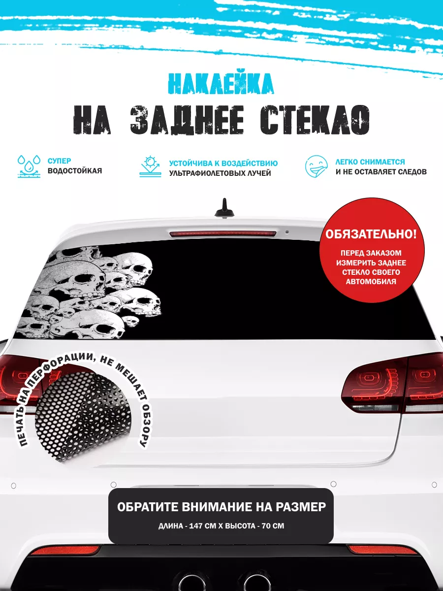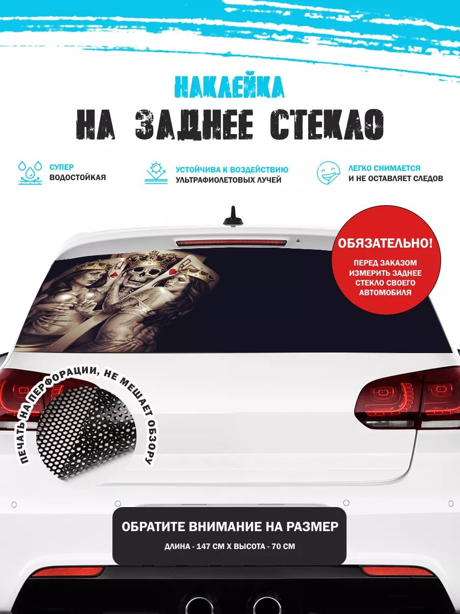 Эта наклейка на заднее стекло автомобиля позволяет придать яркий стиль без изменения кузова. Размер 150х70 см подходит для седанов, хэтчбеков и универсалов. При необходимости можно подрезать лист под нужный размер. Перфорированная самоклеящаяся виниловая пленка ПВХ обеспечивает долговечность и удобство использования.