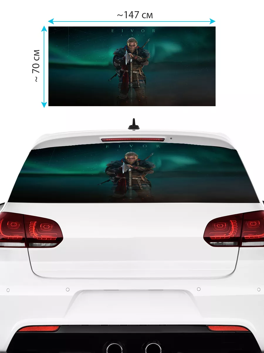 Большая декоративная наклейка на заднее стекло автомобиля, выполненная из перфорированной виниловой пленки ПВХ. Универсального размера 150×70 см, подходит для большинства седанов, хэтчбеков и универсалов. По желанию можно подрезать под нужный размер.