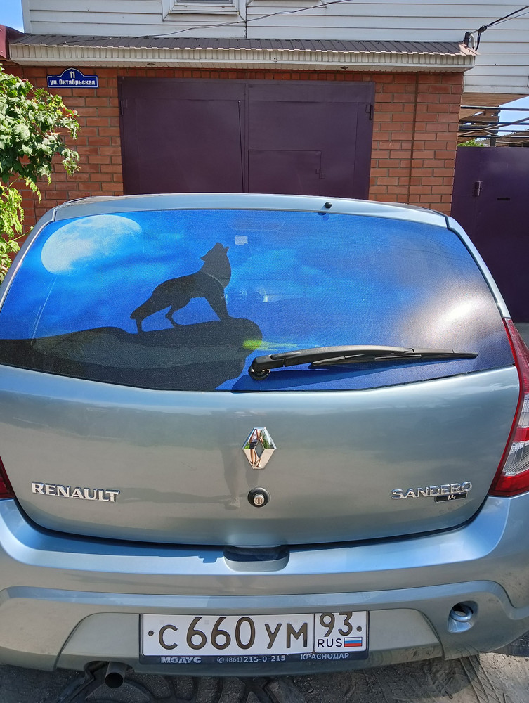 Большая наклейка на заднее стекло автомобиля из самоклеящейся виниловой пленки ПВХ с перфорацией обеспечивает стиль и приватность за счет полной площади рисунка с пропуском для обзора водителя.